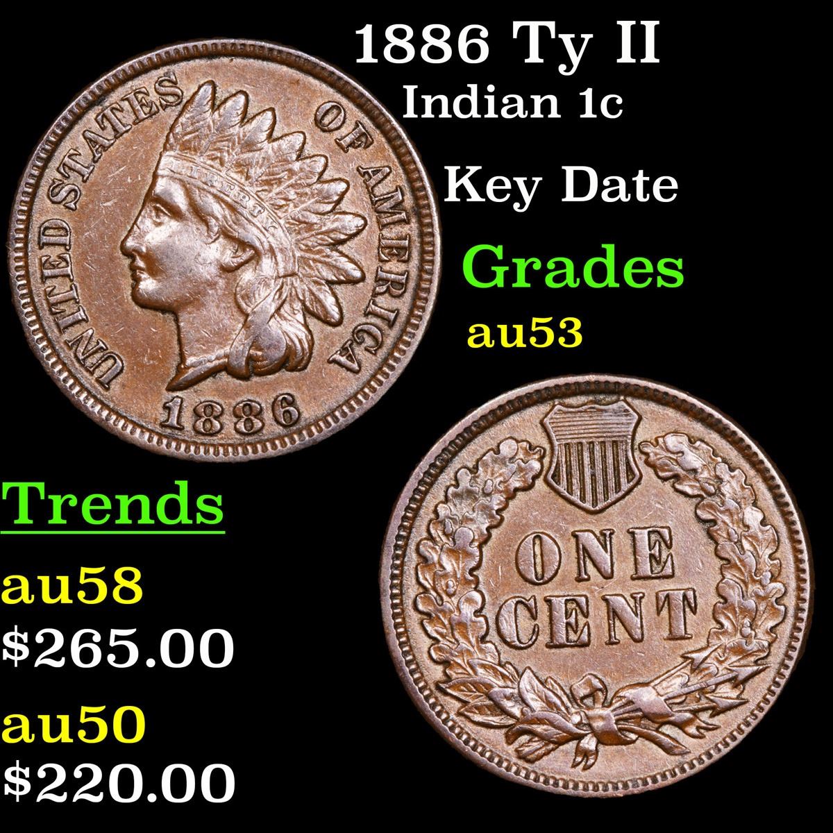 1886 Ty II Key Date . Indian Cent 1c Grades Select AU.