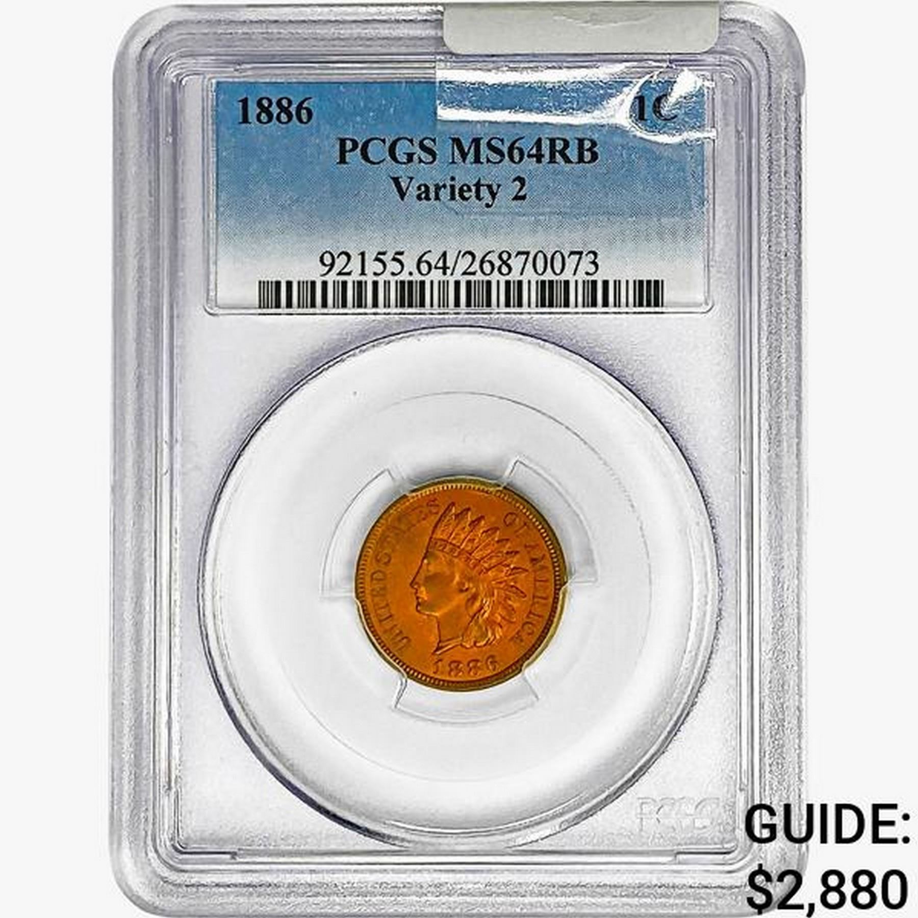 1886 Type 2 Indian Head Cent PCGS MS64 RB