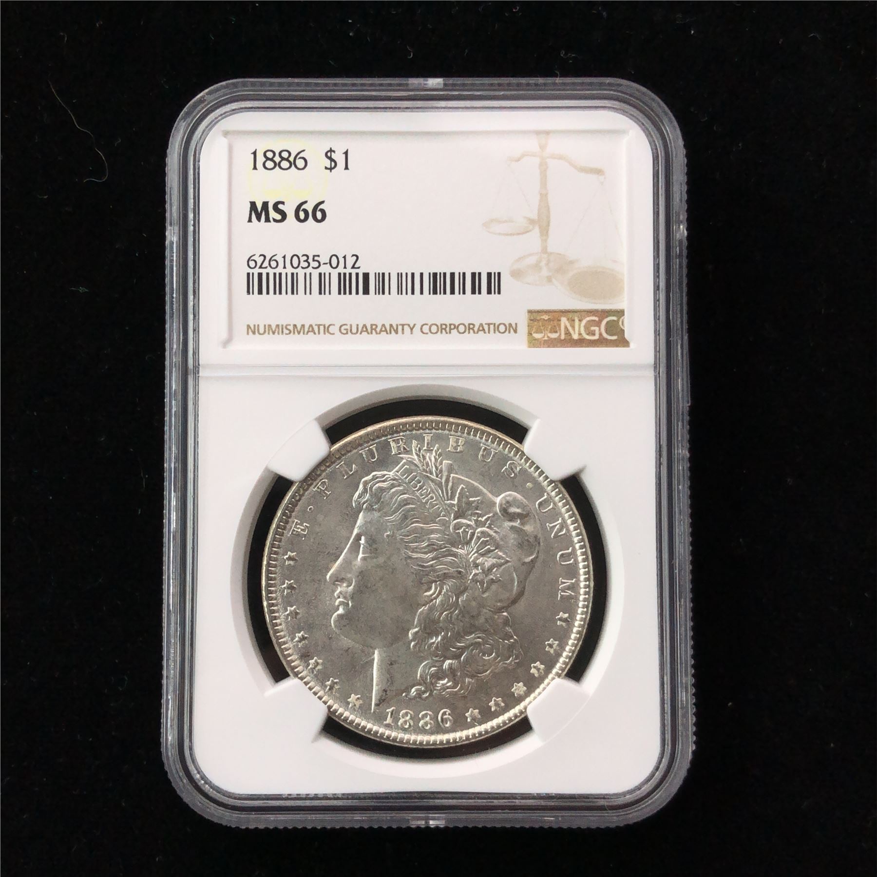 A 1886 Morgan Silver Dollar NGC graded MS66.This specific coin is stunning in hand, it sports blast