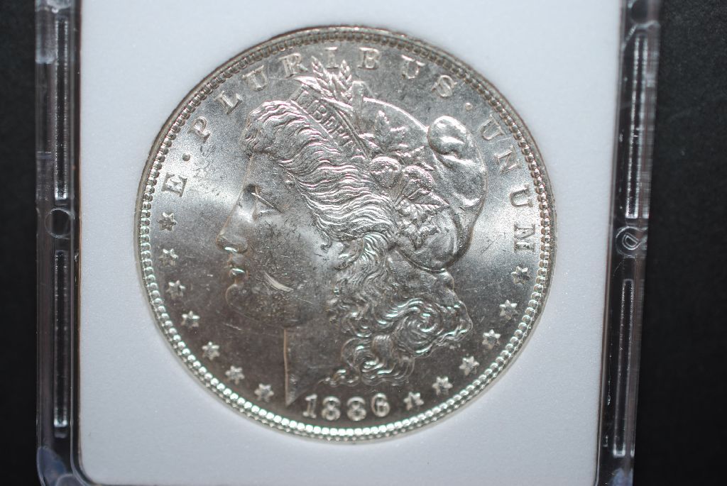 1886 US Silver Morgan $1; MCPCG Graded MS63; EST. $45-65