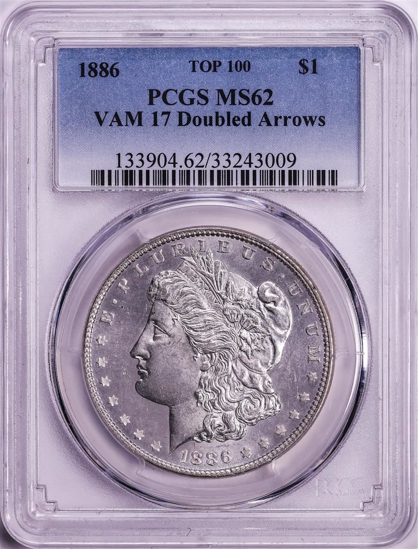 1886 VAM-17 Doubled Arrows $1 Morgan Silver Dollar Coin PCGS MS62