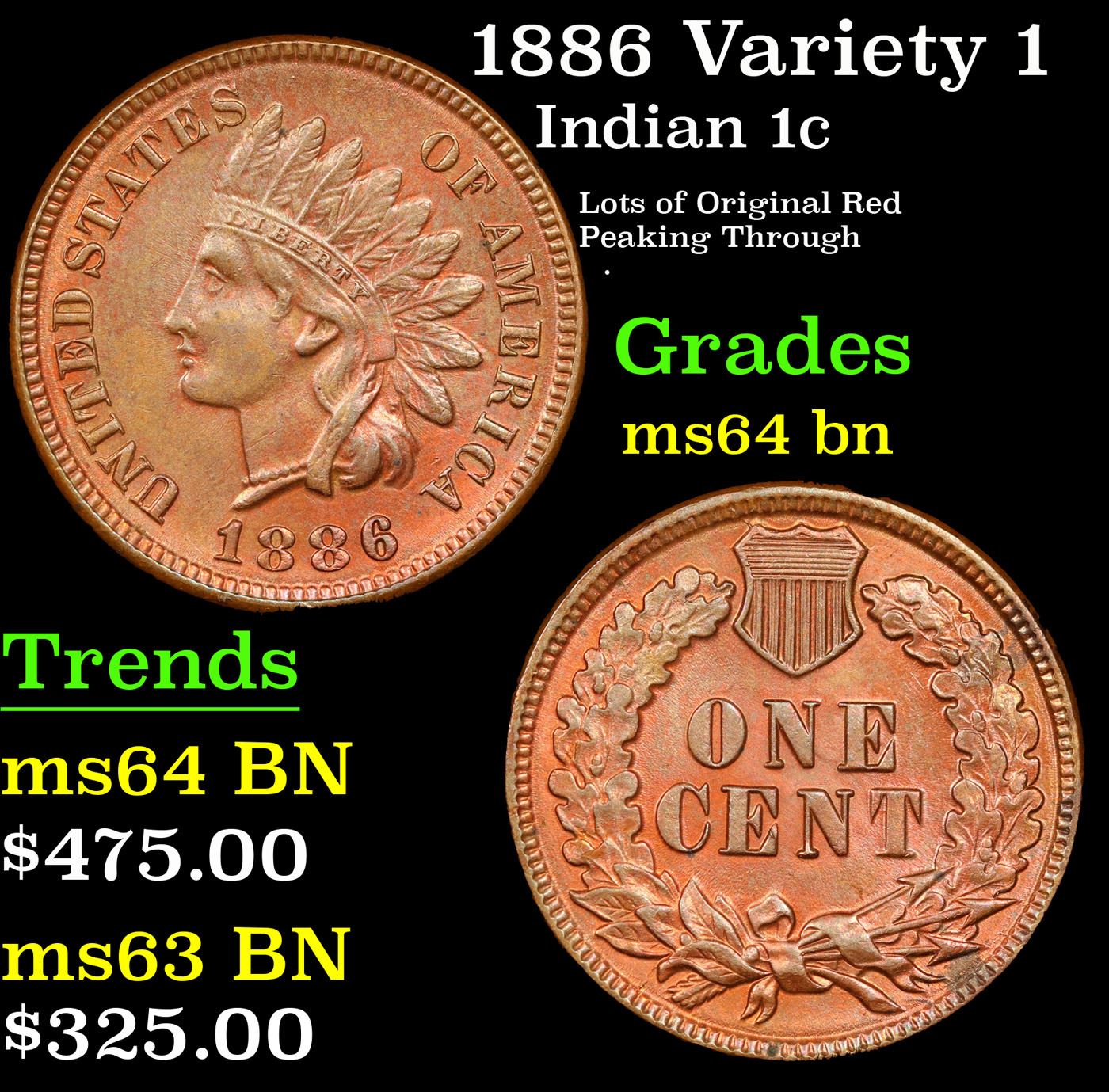 1886 Variety 1 Indian Cent 1c Grades Choice Unc BN.