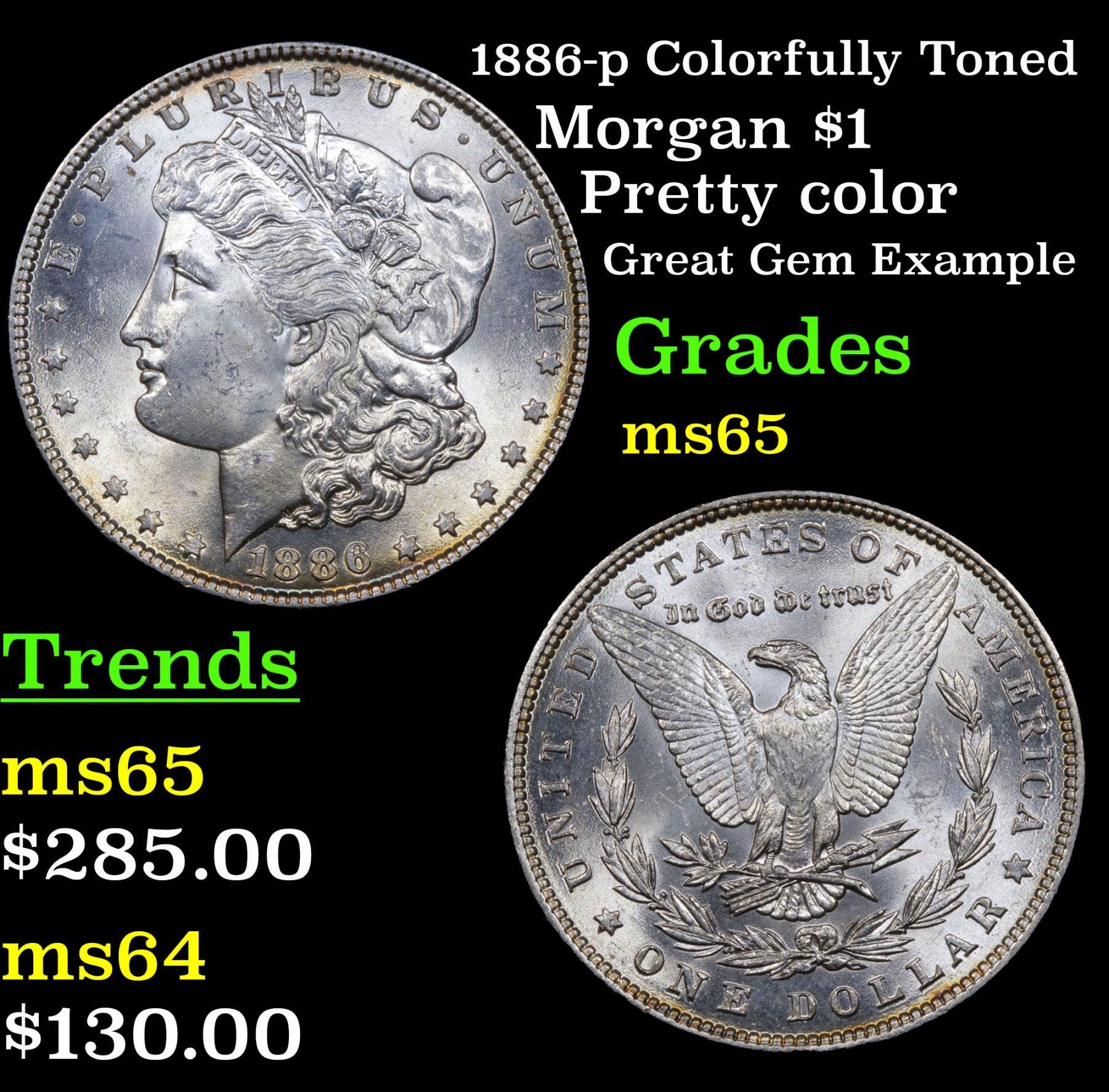 1886-p Colorfully Toned Morgan Dollar $1 Grades GEM Unc.