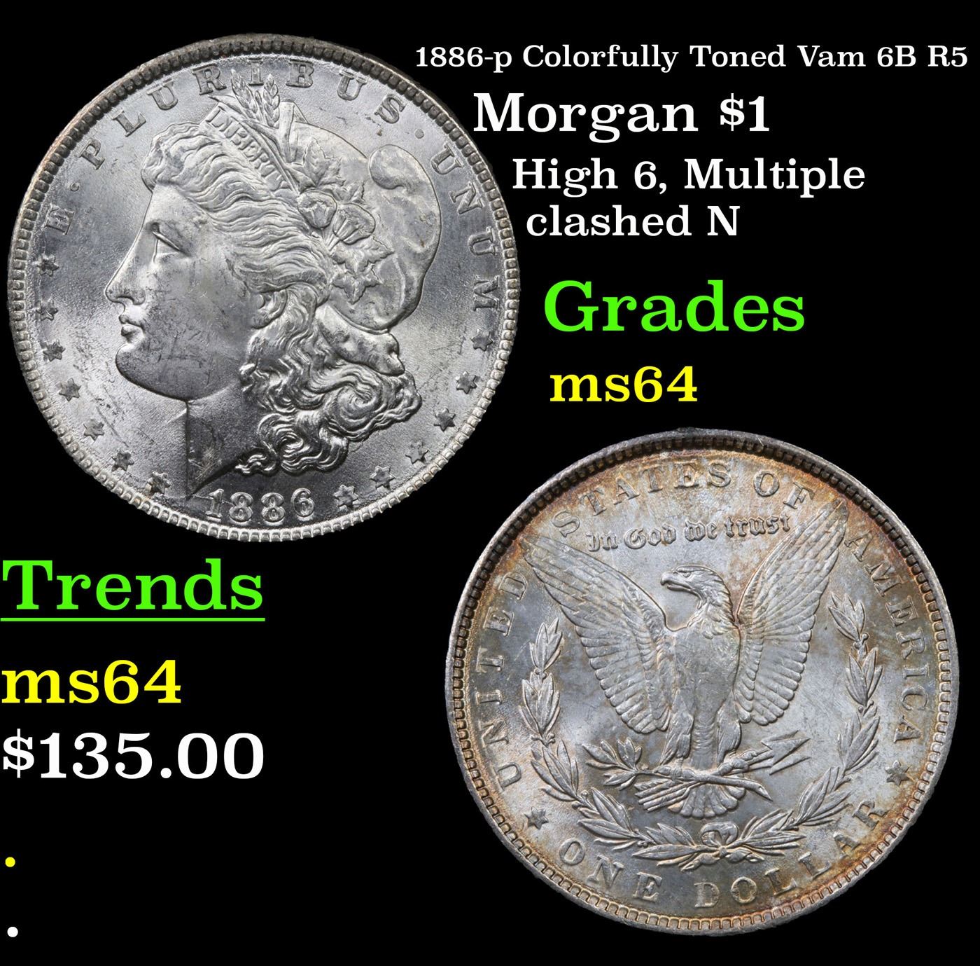 1886-p Colorfully Toned Vam 6B R5 Morgan Dollar $1 Grades Choice Unc.