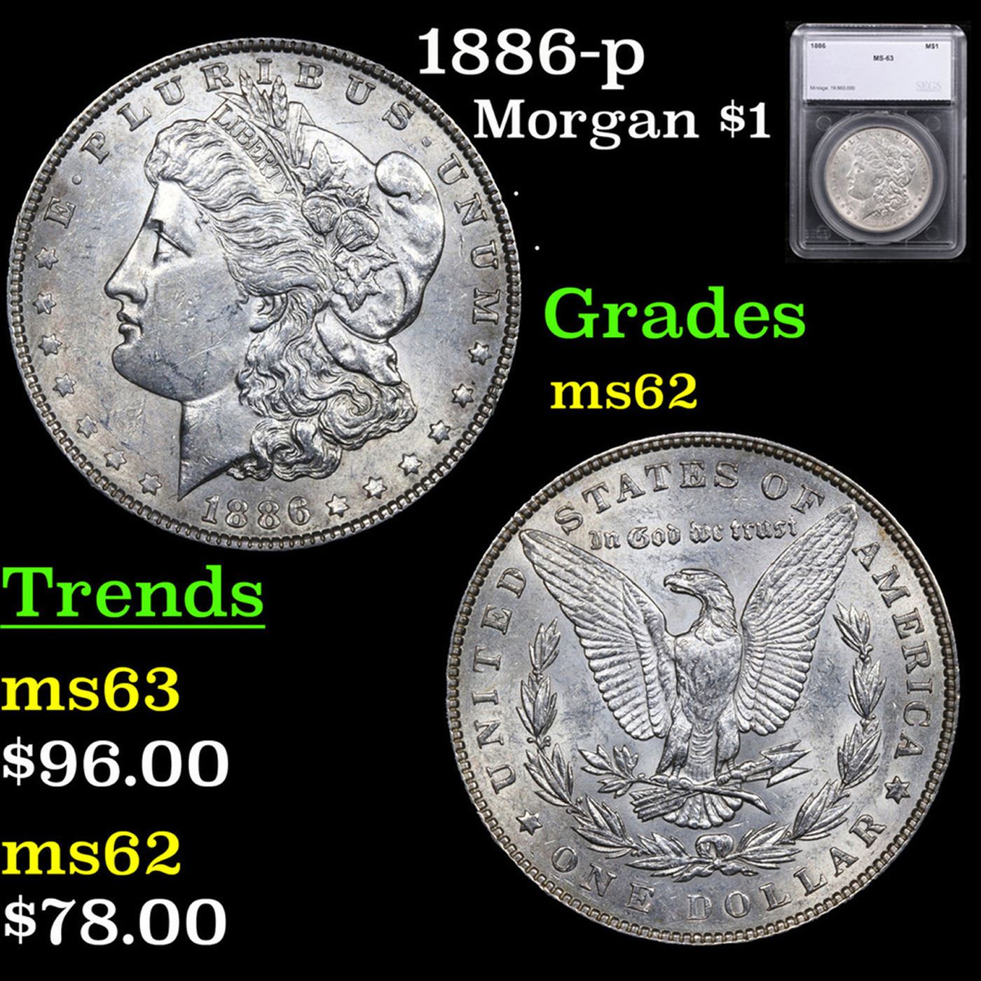 1886-p Morgan Dollar $1 Graded ms62 By SEGS.