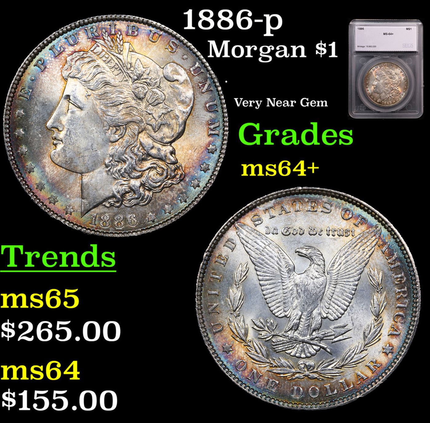 1886-p Morgan Dollar $1 Graded ms64+ By SEGS.
