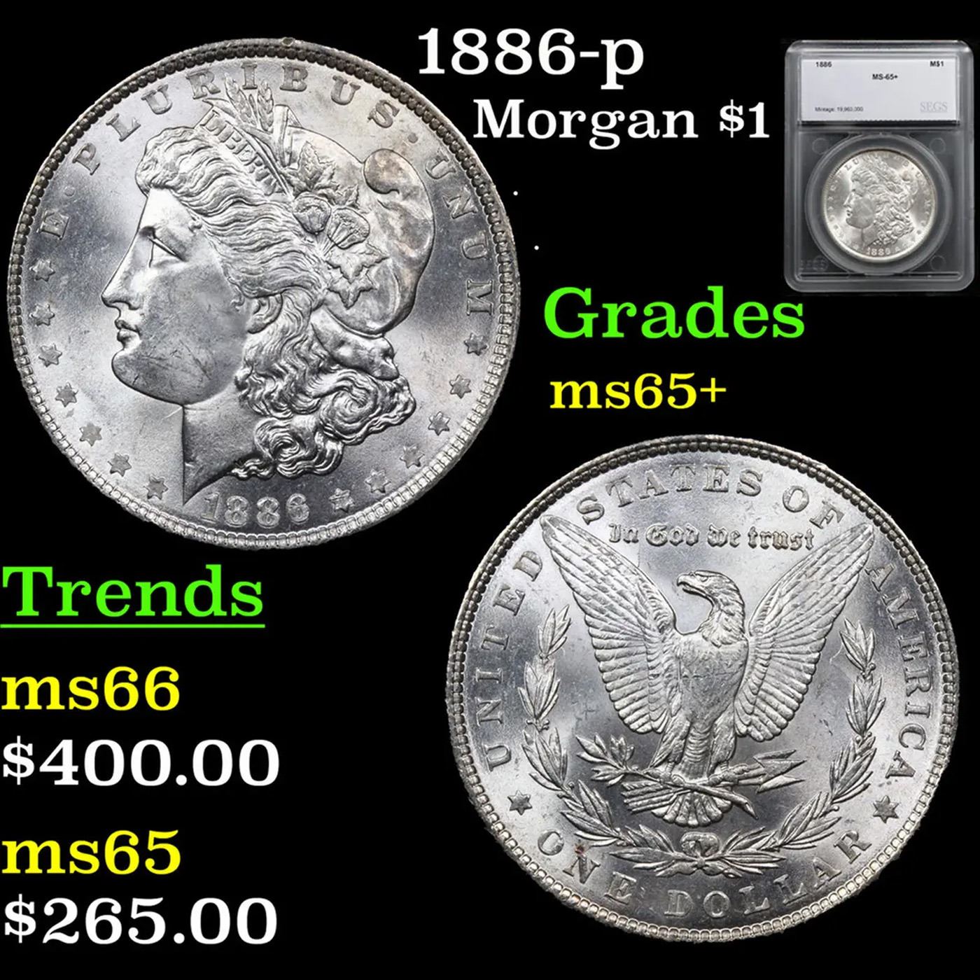 1886-p Morgan Dollar $1 Graded ms65+ By SEGS. A Key Date's Pick, Bid to Win Coin