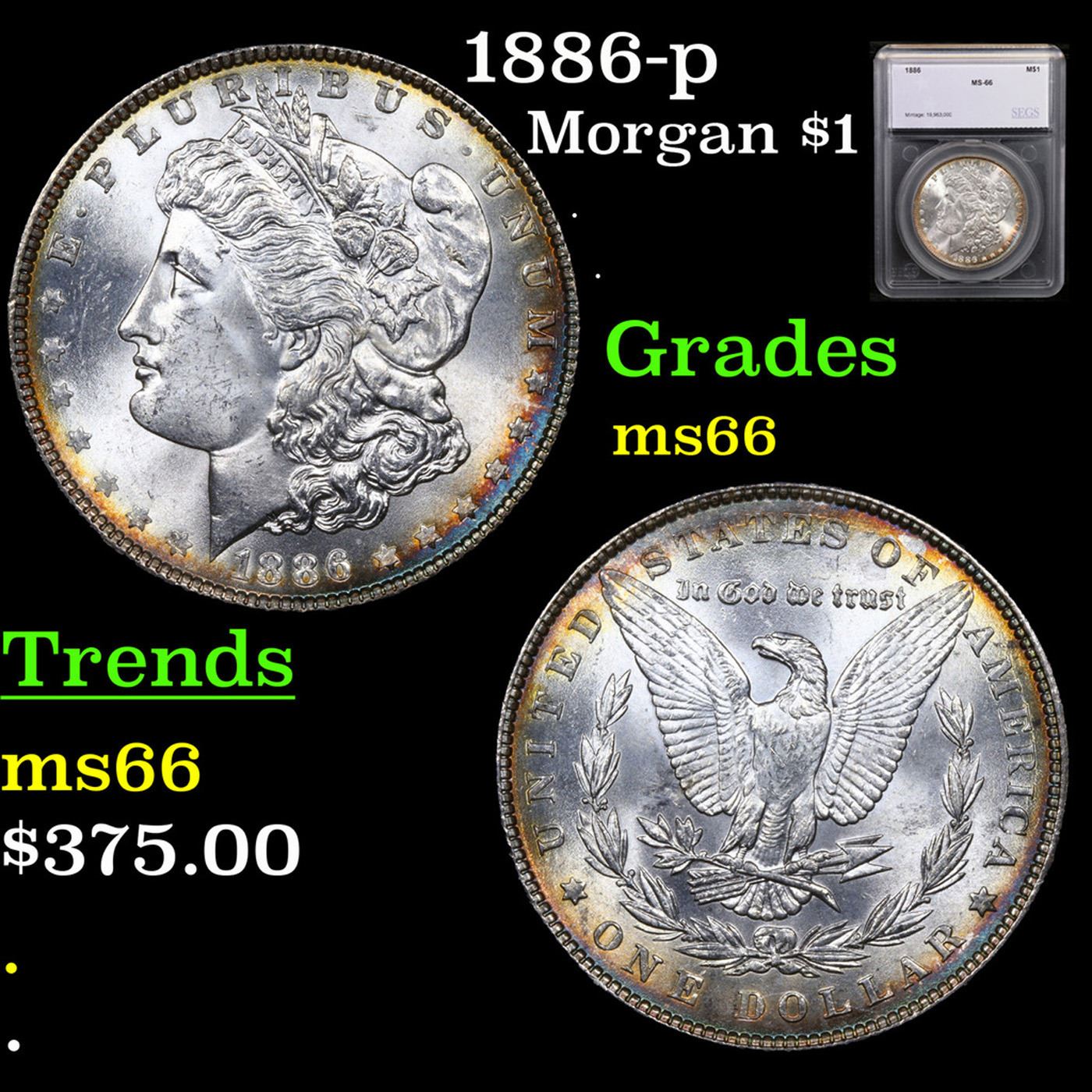 1886-p Morgan Dollar $1 Graded ms66 By SEGS.