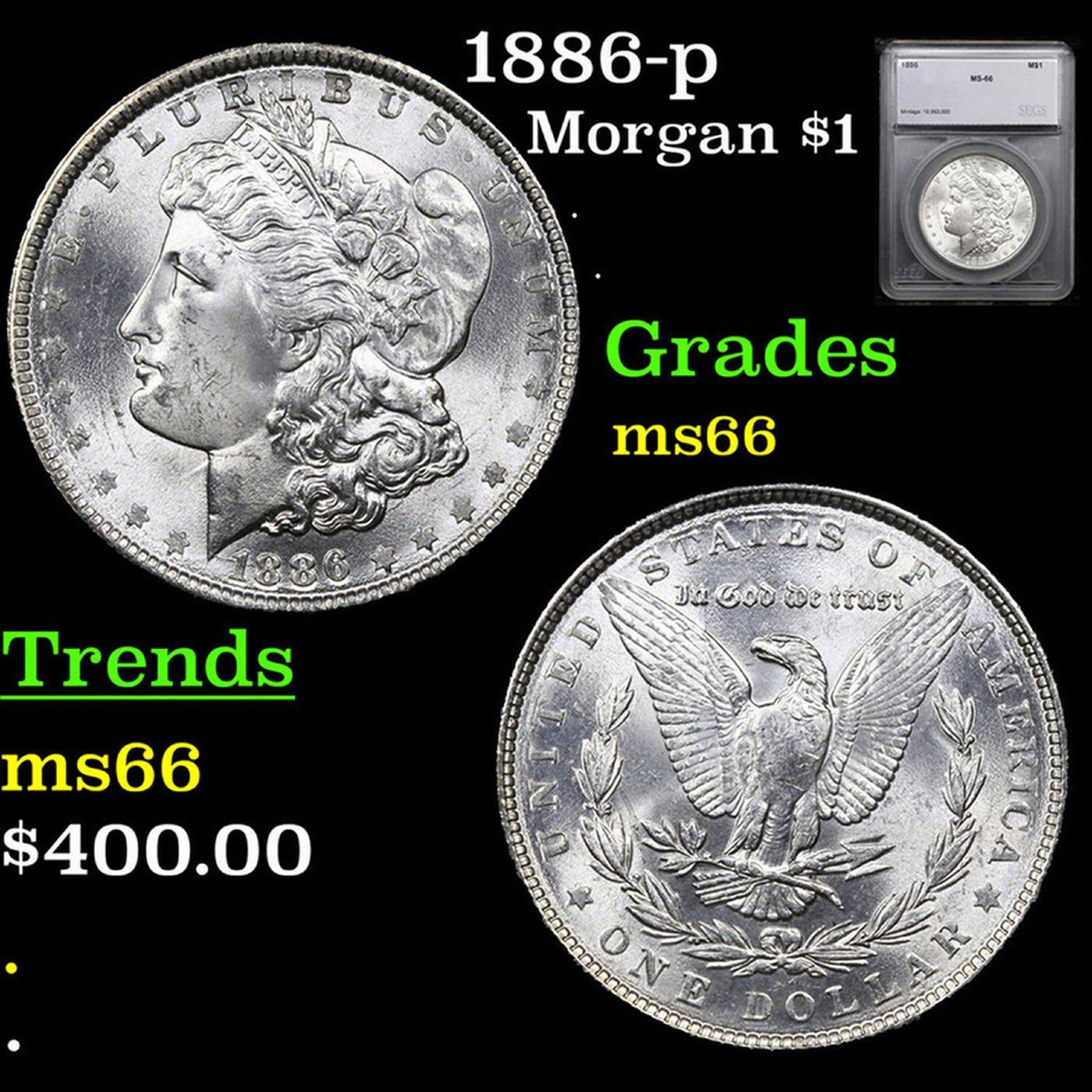 1886-p Morgan Dollar $1 Graded ms66 By SEGS.