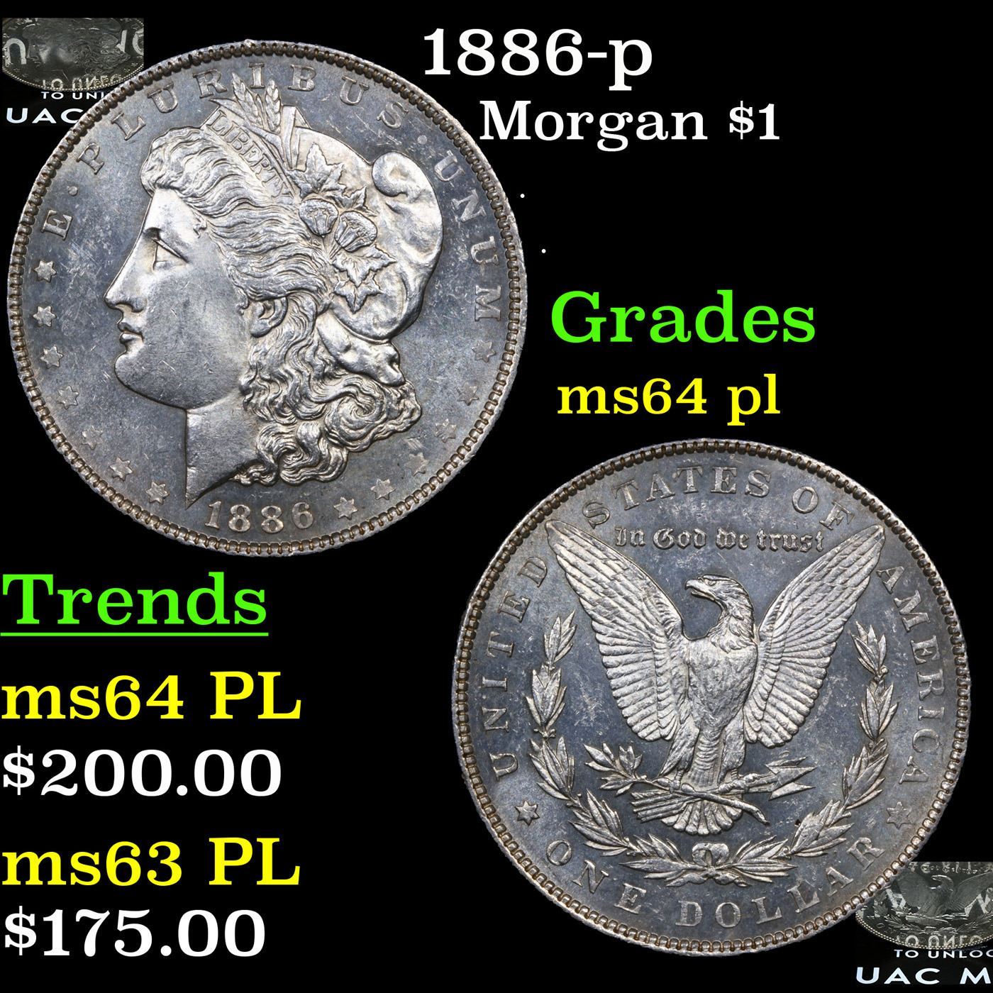 1886-p Morgan Dollar $1 Grades Choice Unc PL.