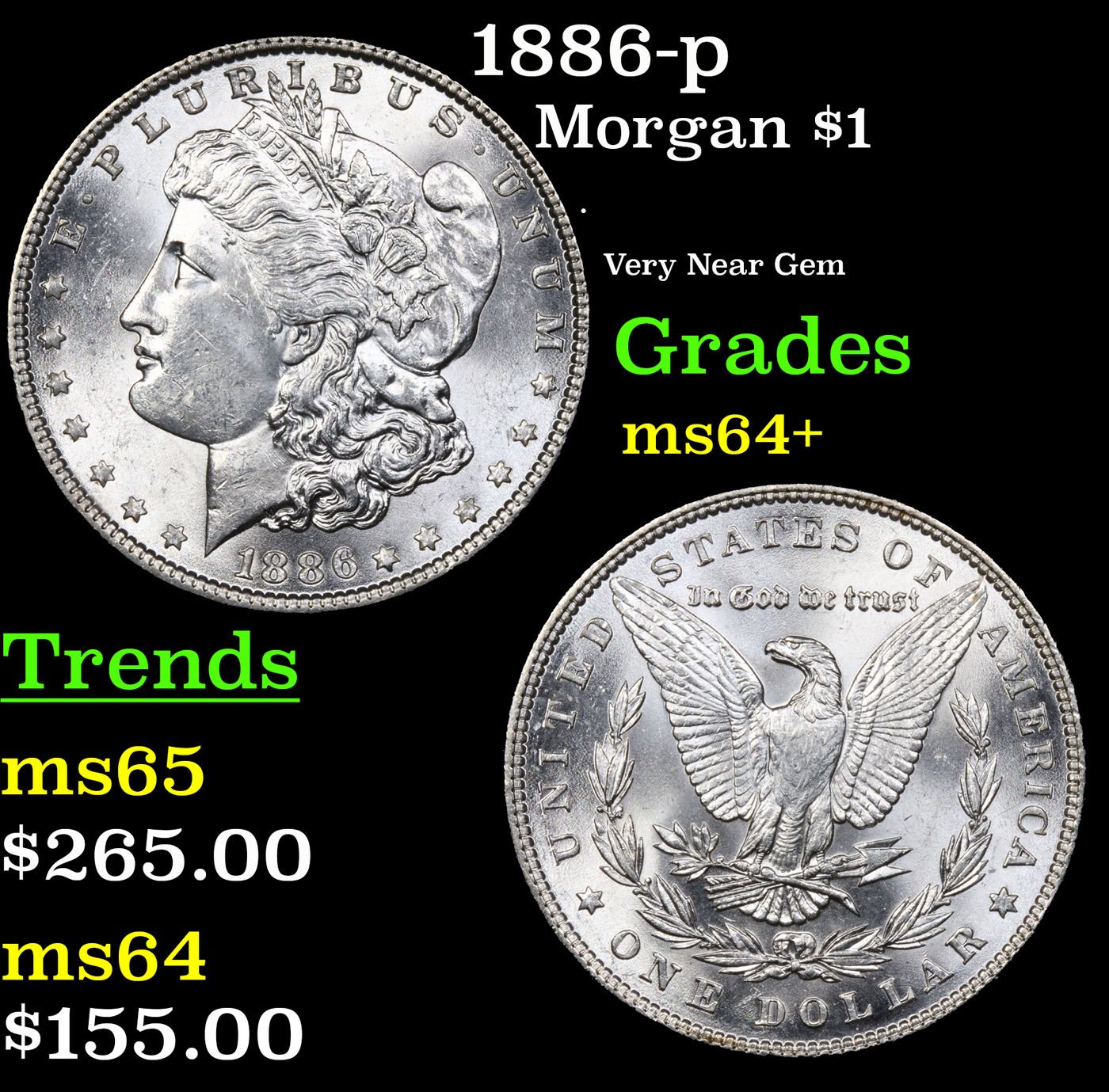 1886-p Morgan Dollar $1 Grades Choice+ Unc.