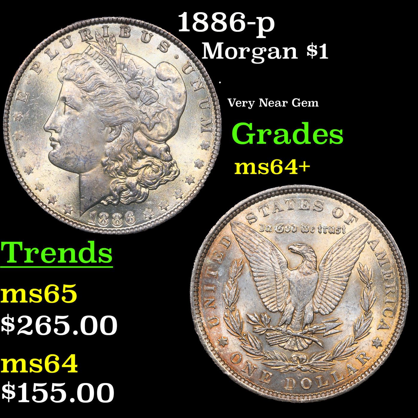 1886-p Morgan Dollar $1 Grades Choice+ Unc.