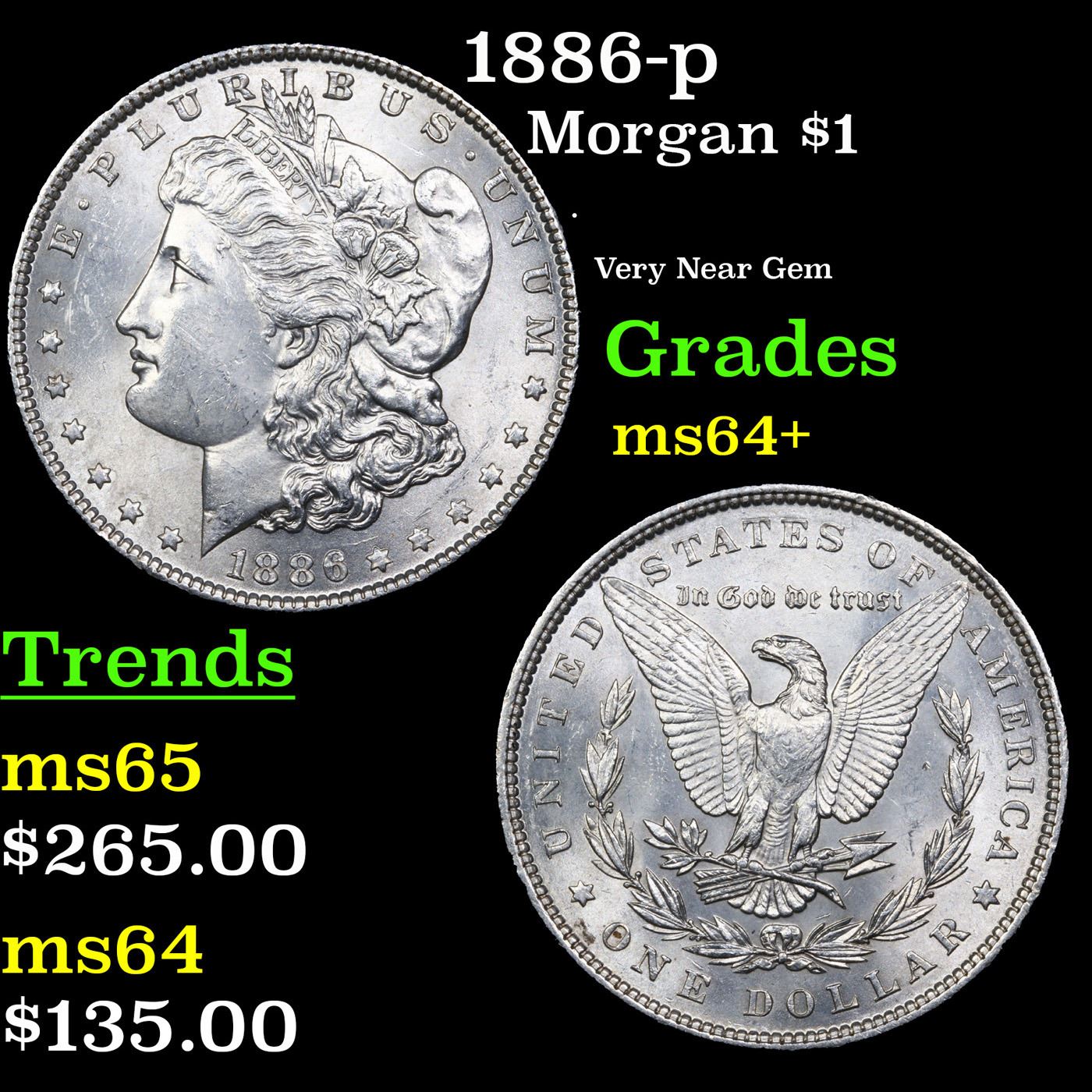 1886-p Morgan Dollar $1 Grades Choice+ Unc.