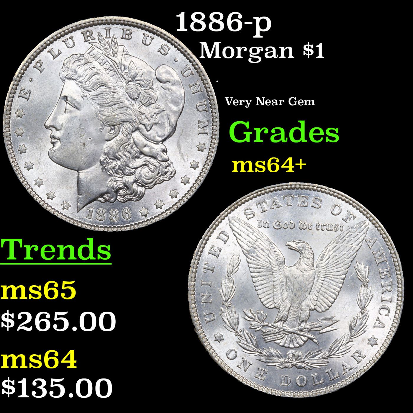 1886-p Morgan Dollar $1 Grades Choice+ Unc.