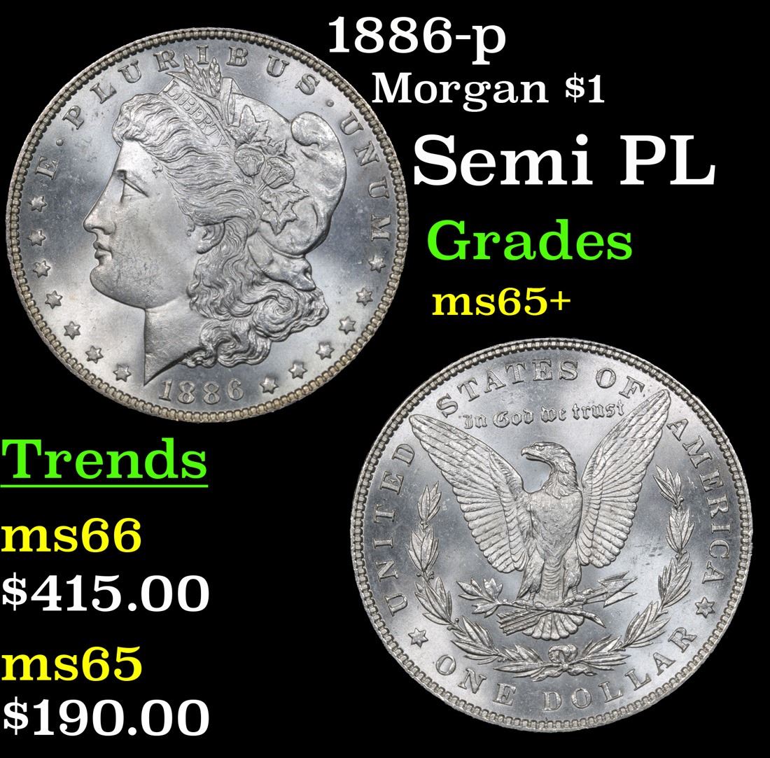 1886-p Semi PL . Morgan Dollar $1 Grades GEM+ Unc.