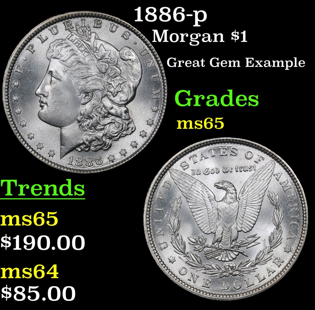 1886-p . Great Gem Example Morgan Dollar $1 Grades GEM Unc.
