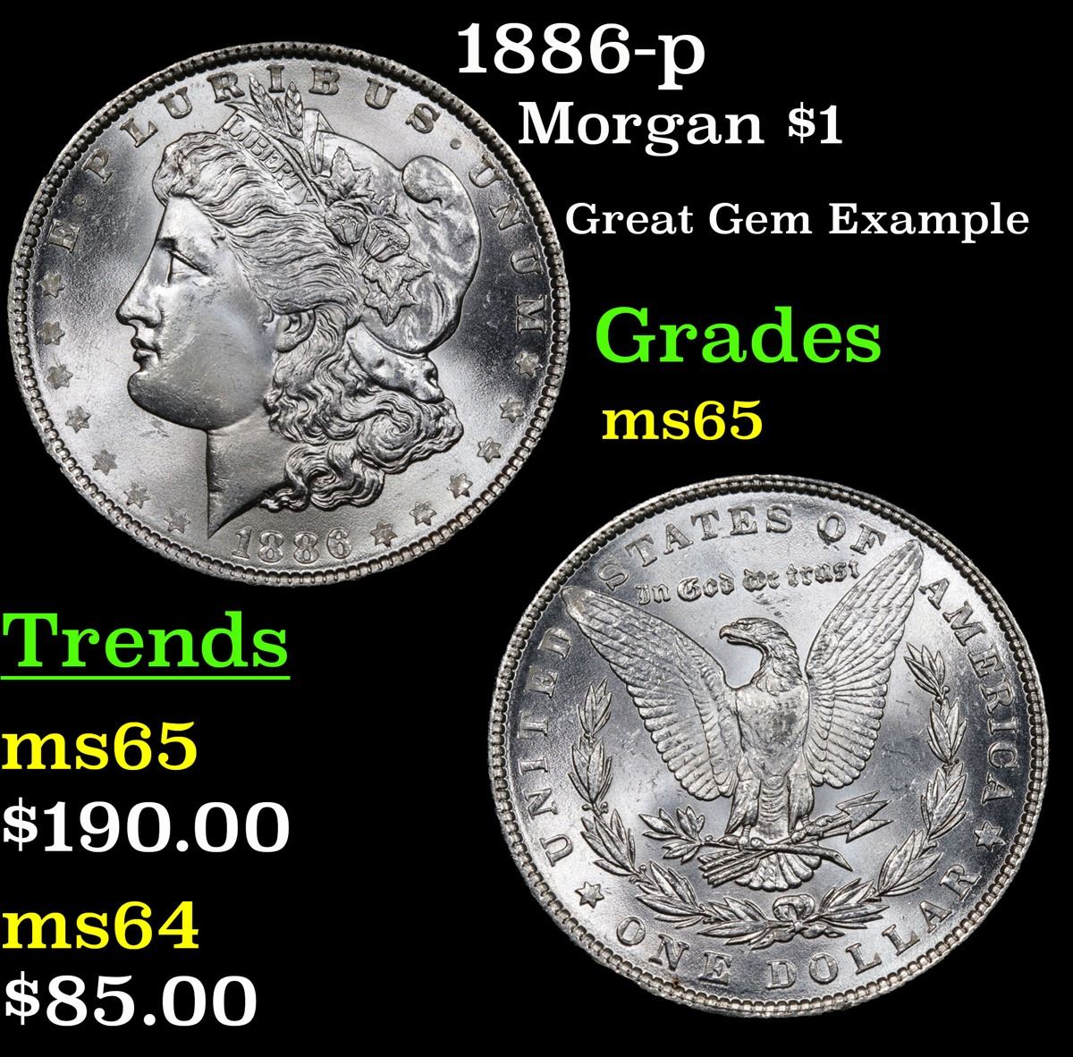 1886-p Morgan Dollar $1 Grades GEM Unc.