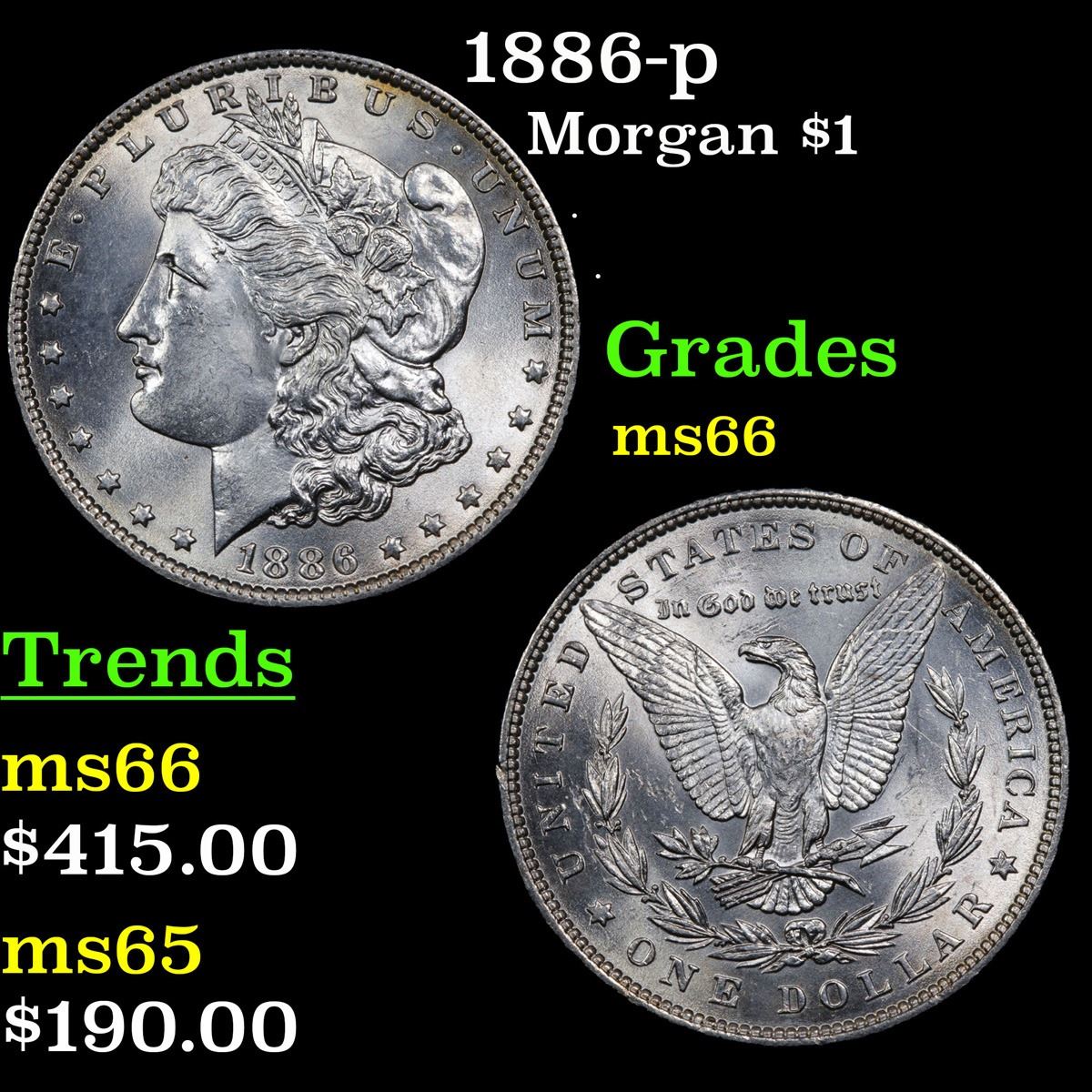 1886-p Morgan Dollar $1 Grades GEM+ Unc.