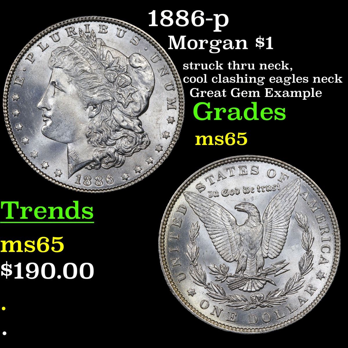 1886-p Morgan Dollar $1 Grades GEM Unc.