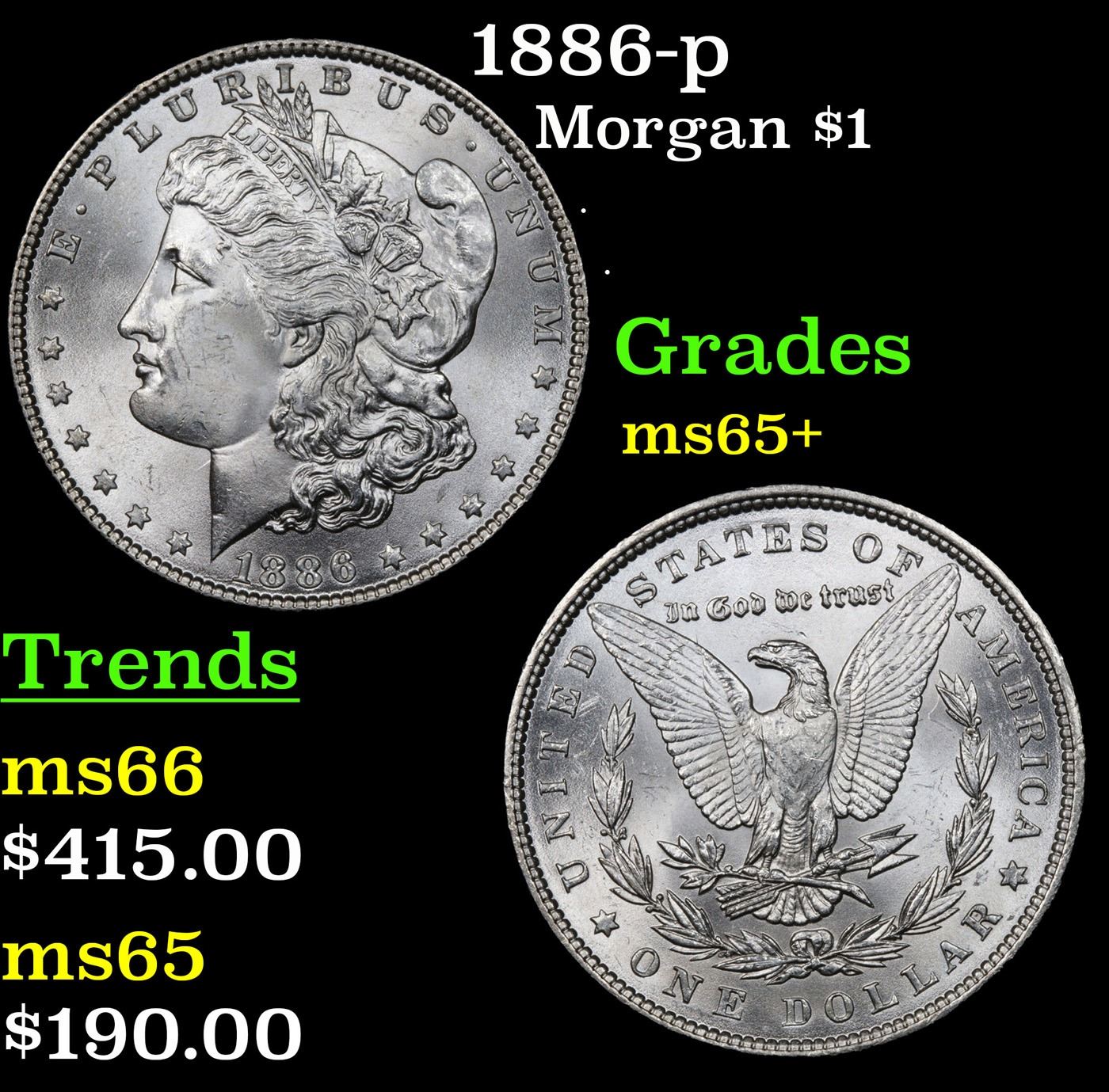1886-p Morgan Dollar $1 Grades GEM+ Unc.