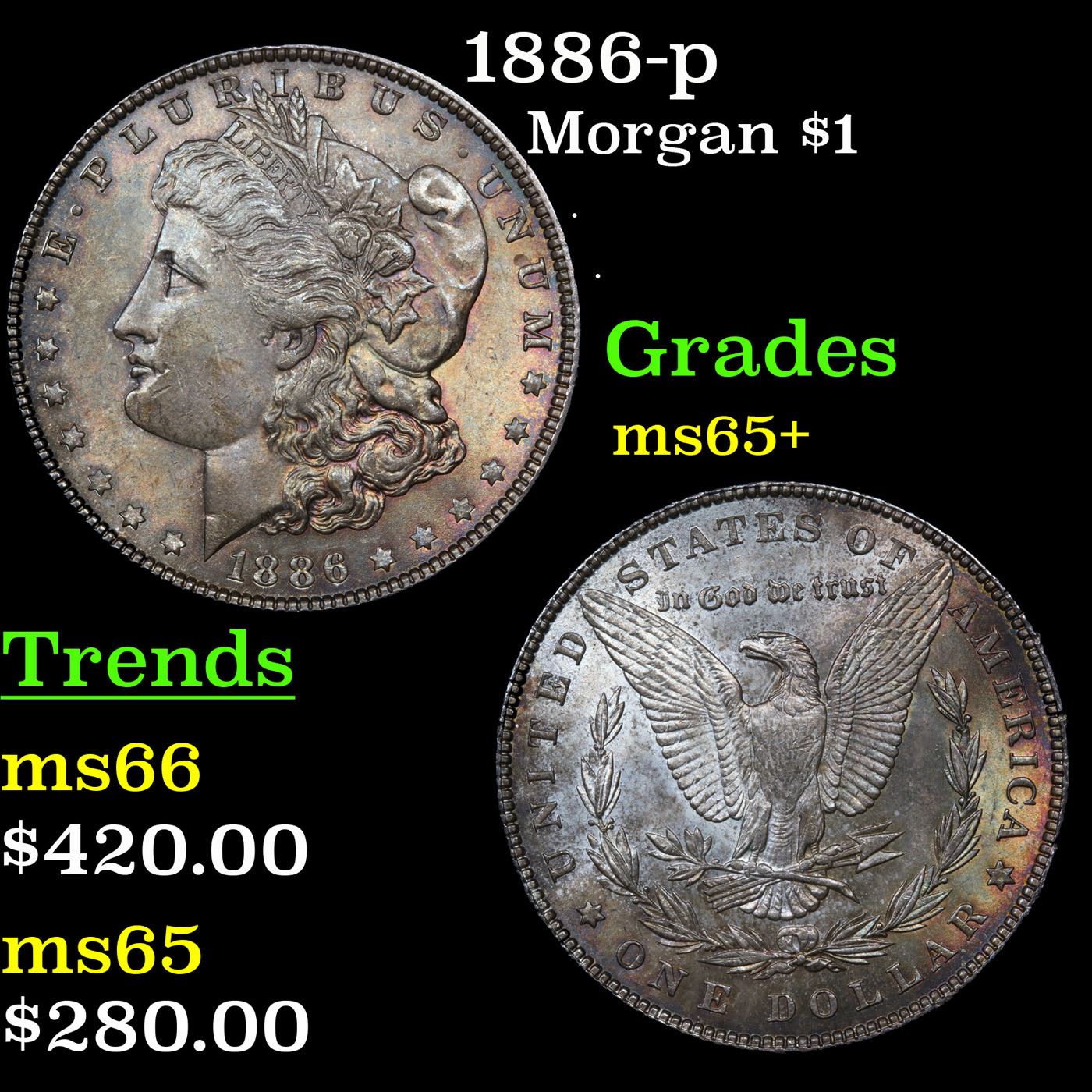 1886-p Morgan $1 Grades GEM+ Unc