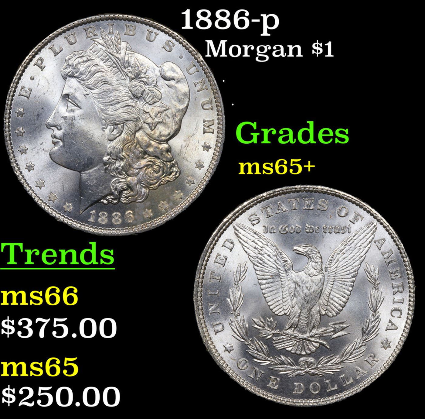 1886-p Morgan Dollar $1 Grades GEM+ Unc.