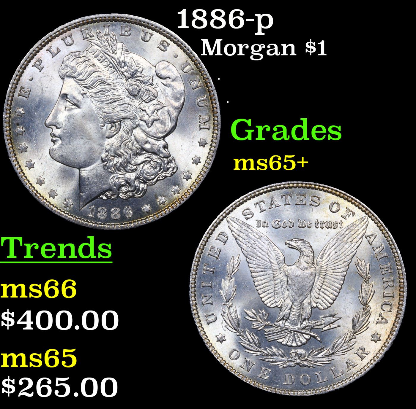 1886-p Morgan Dollar $1 Grades GEM+ Unc.
