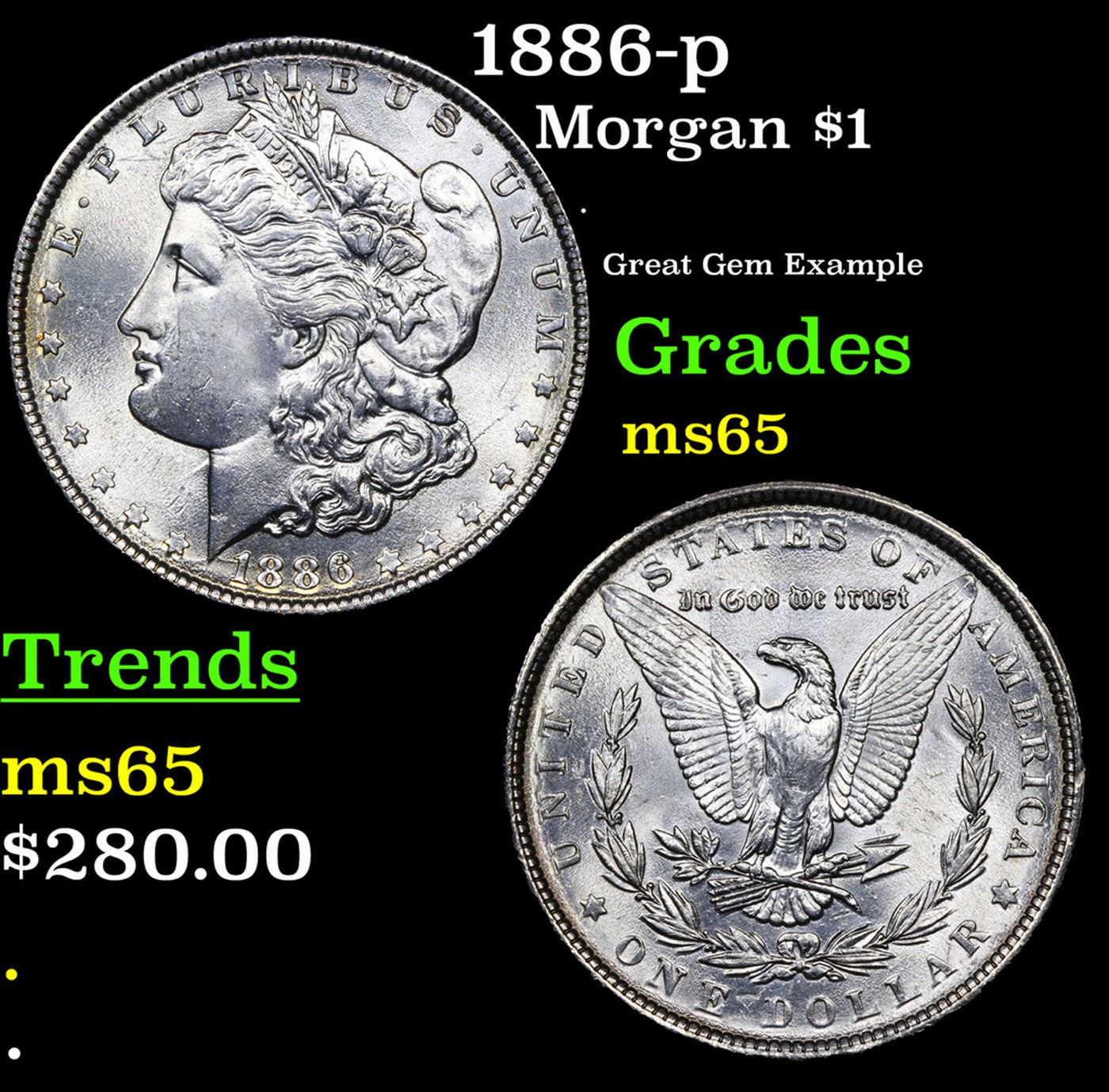 1886-p Morgan Dollar $1 Grades GEM Unc.