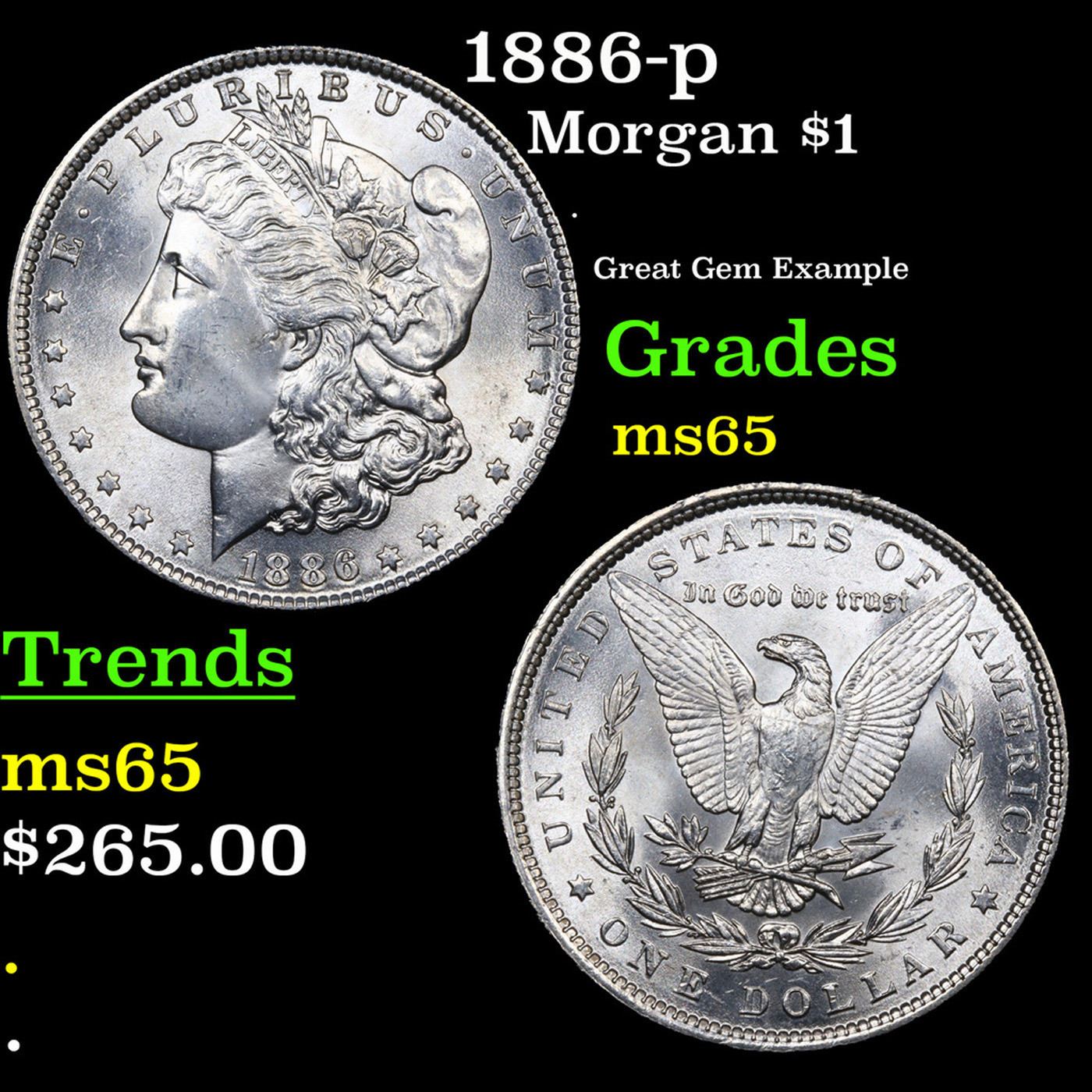 1886-p Morgan Dollar $1 Grades GEM Unc.