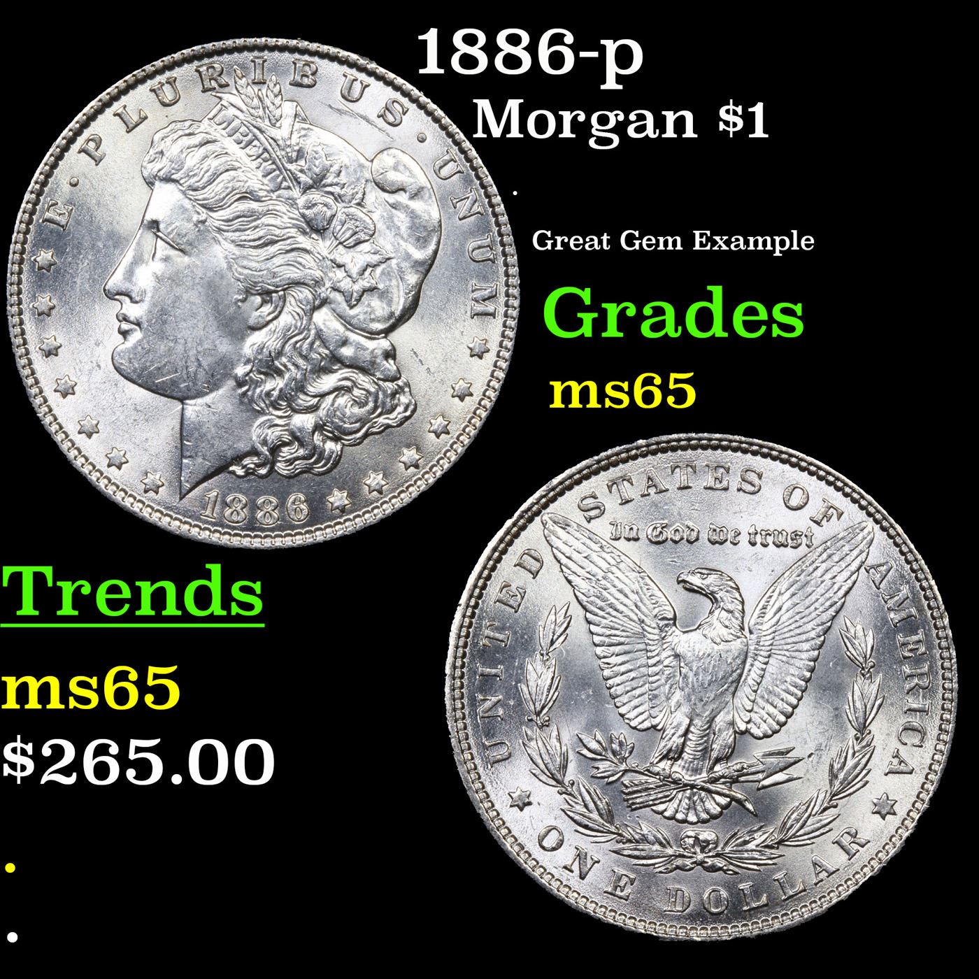 1886-p Morgan Dollar $1 Grades GEM Unc.