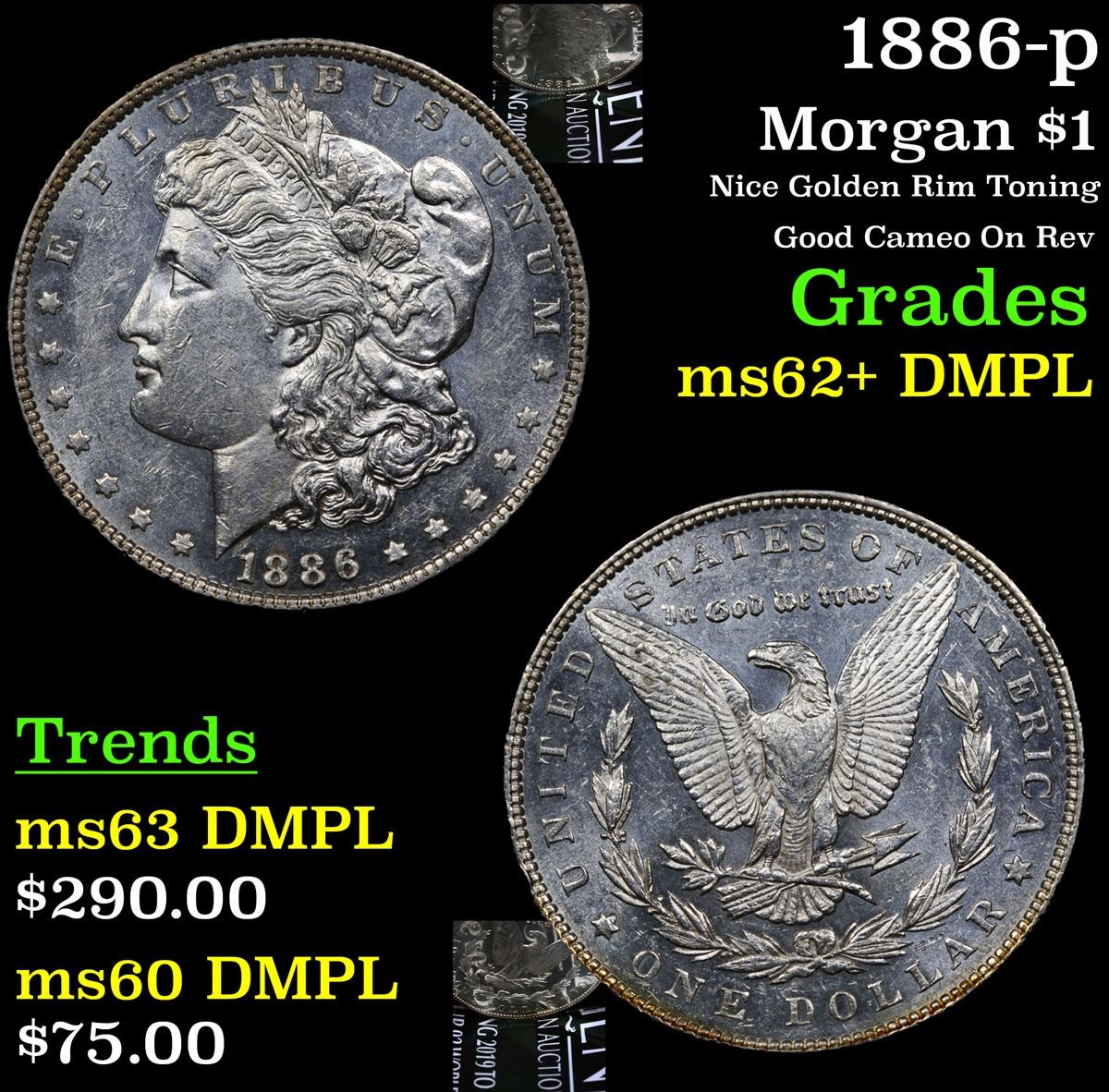 1886-p Morgan Dollar $1 Grades Select Unc+ DMPL.
