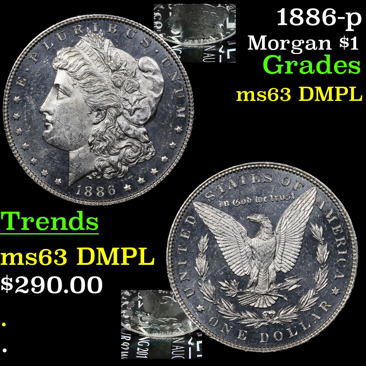 1886-p Morgan Dollar $1 Grades Select Unc DMPL.