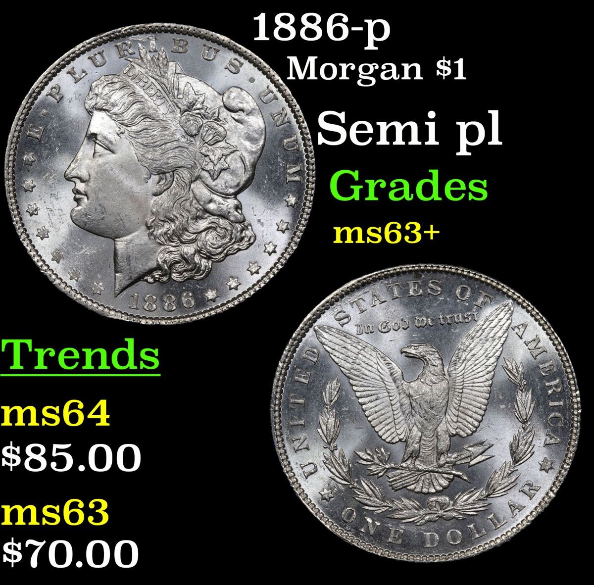 1886-p Morgan Dollar $1 Grades Select+ Unc.