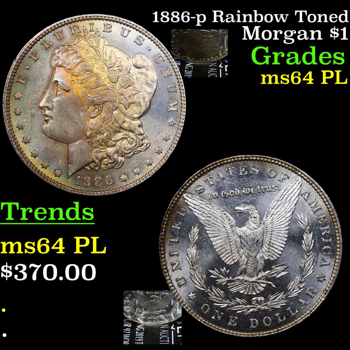 1886-p Rainbow Toned Morgan Dollar $1 Grades Choice Unc PL.