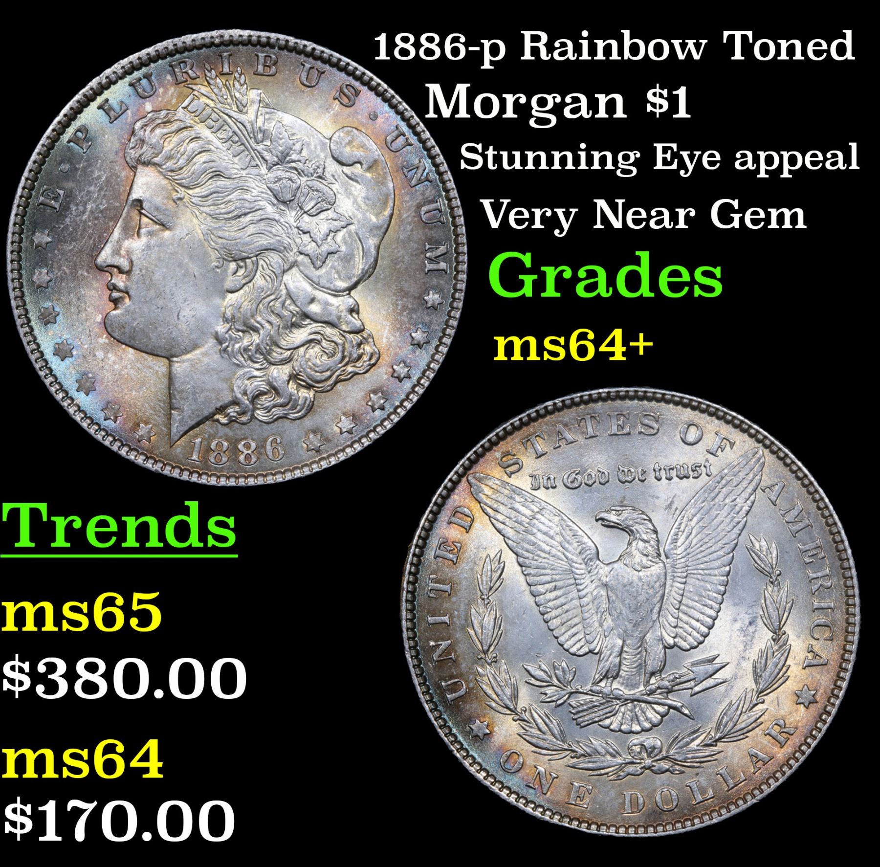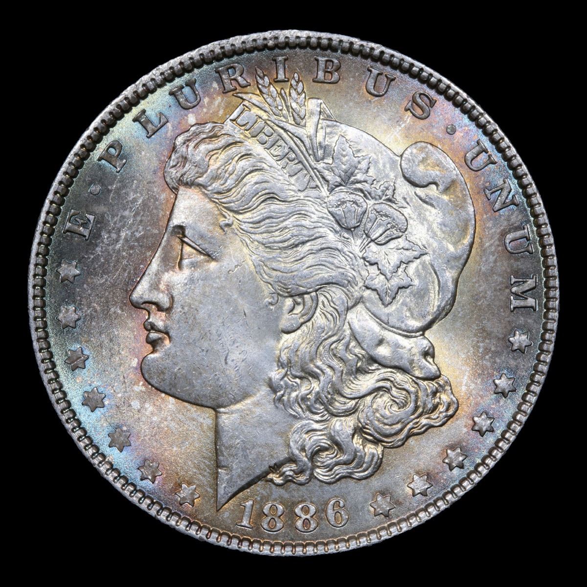 1886-p Rainbow Toned Stunning Eye appeal Very Near Gem Morgan Dollar $1 Grades Choice+ Unc.
