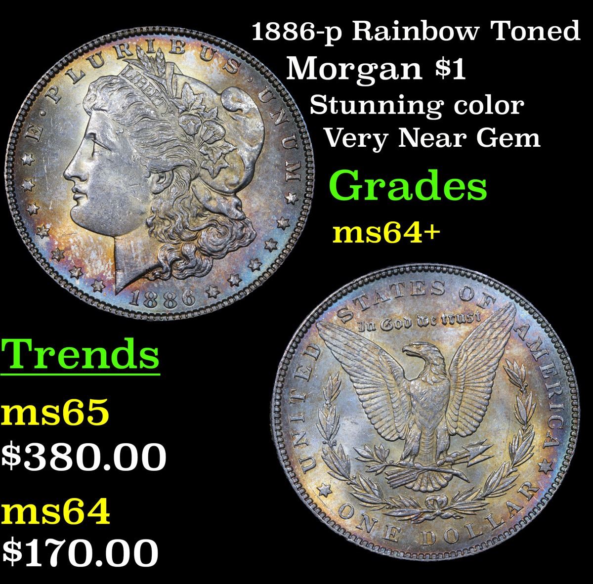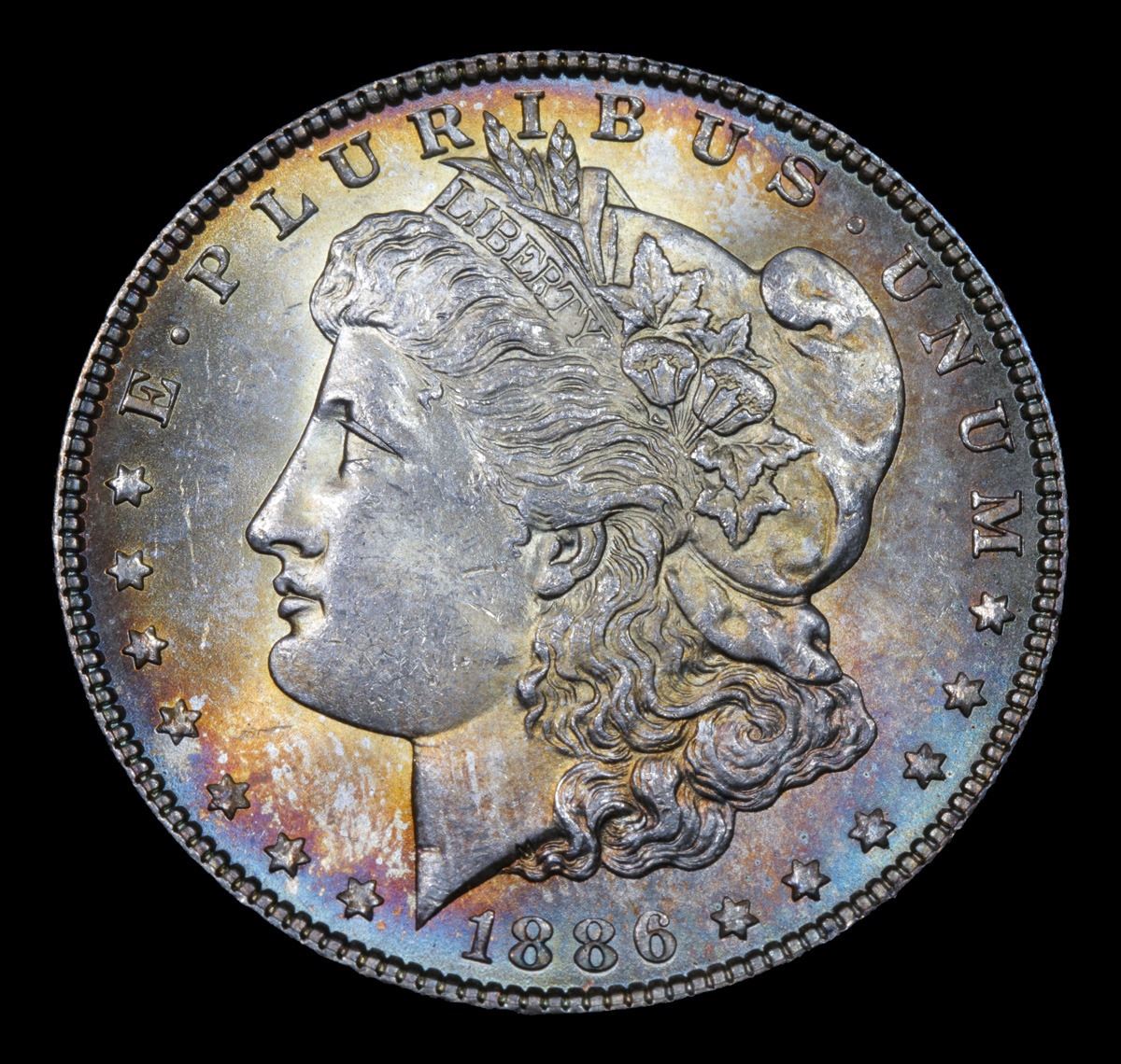 1886-p Rainbow Toned Morgan Dollar $1 Grades Choice+ Unc. A Corey's Pick, Bid to Win, Don't let it get Away, you might not find its equal Coin. I give this coin my highest recommendation