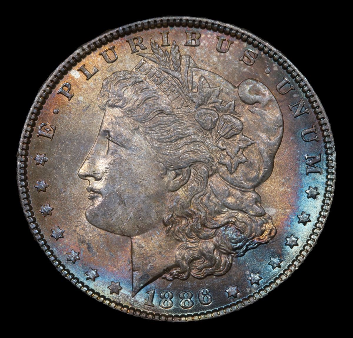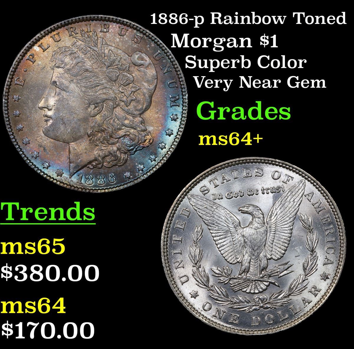 1886-p Rainbow Toned Morgan Dollar $1 Grades Choice+ Unc.
