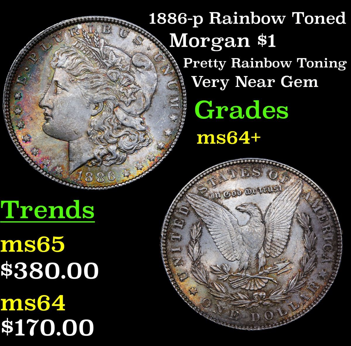 1886-p Rainbow Toned Morgan Dollar $1 Grades Choice+ Unc.