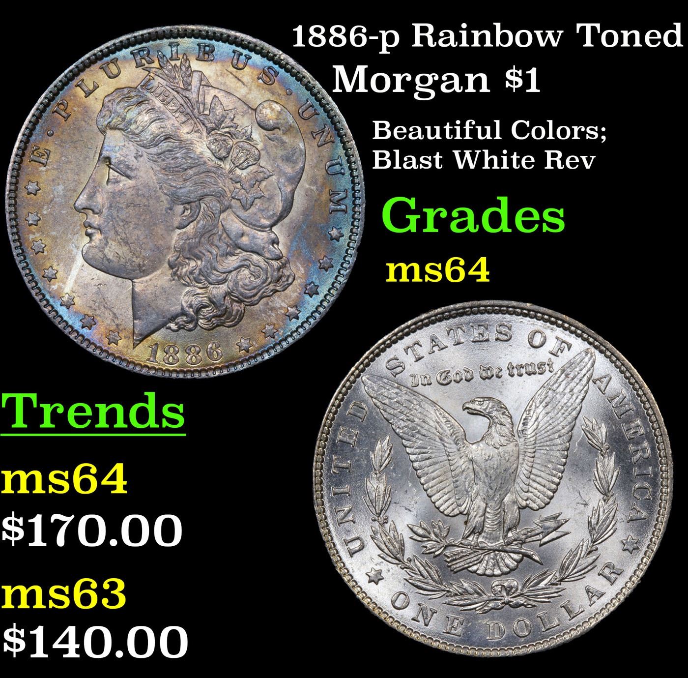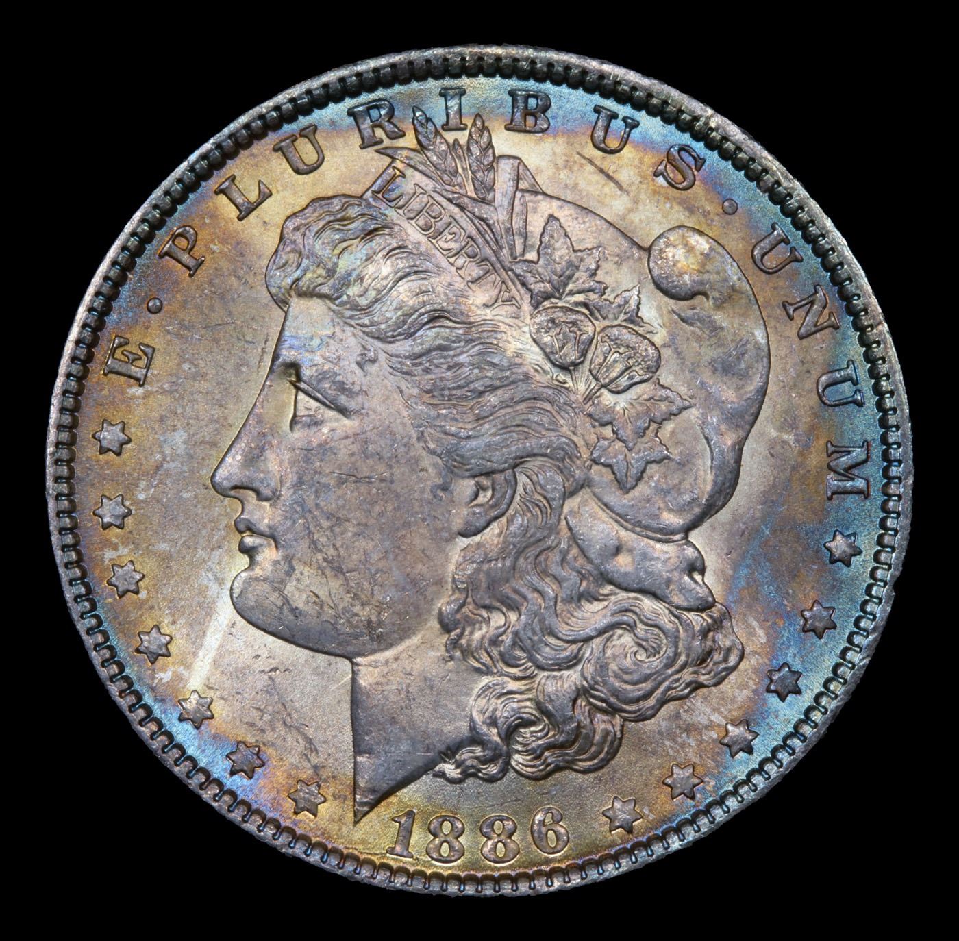 1886-p Rainbow Toned Morgan Dollar $1 Grades Choice Unc.
