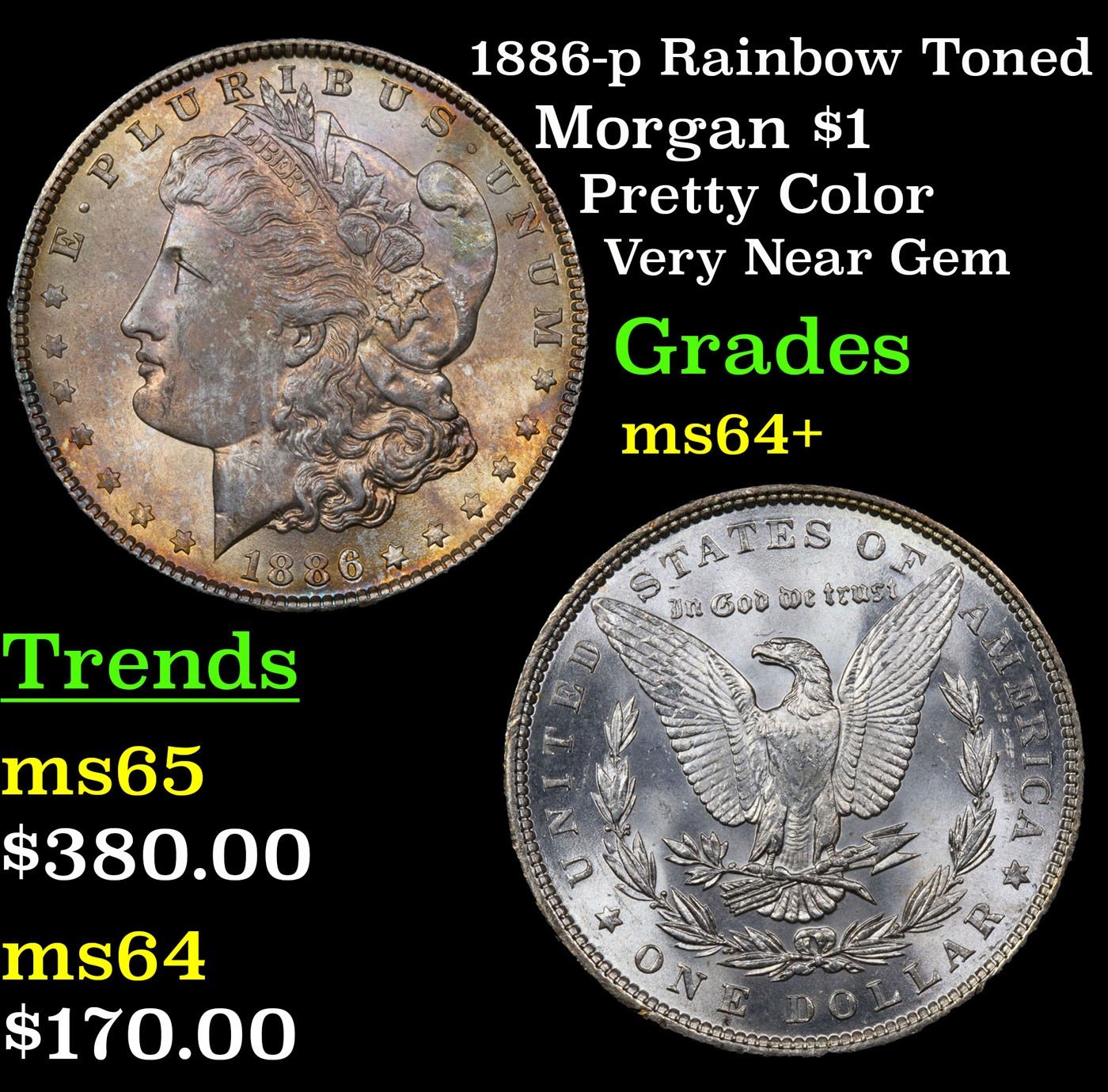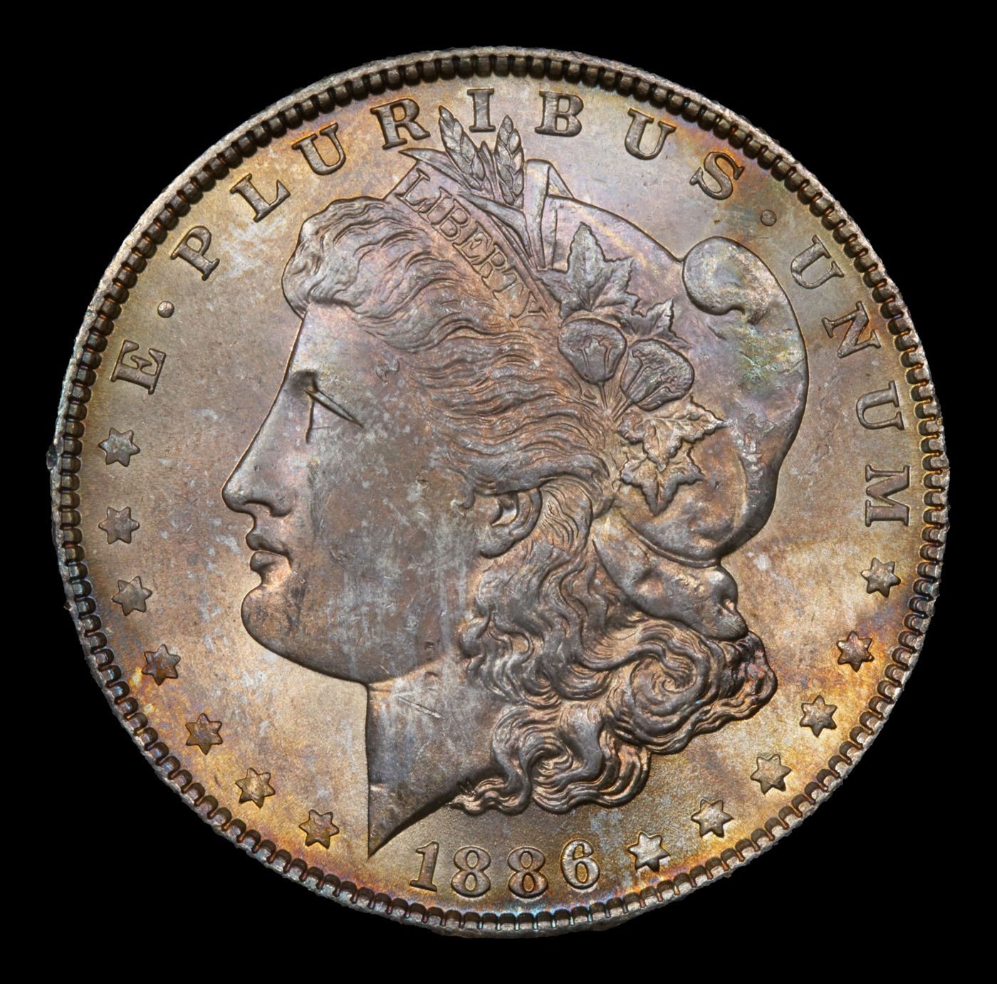 1886-p Rainbow Toned Morgan Dollar $1 Grades Choice+ Unc.
