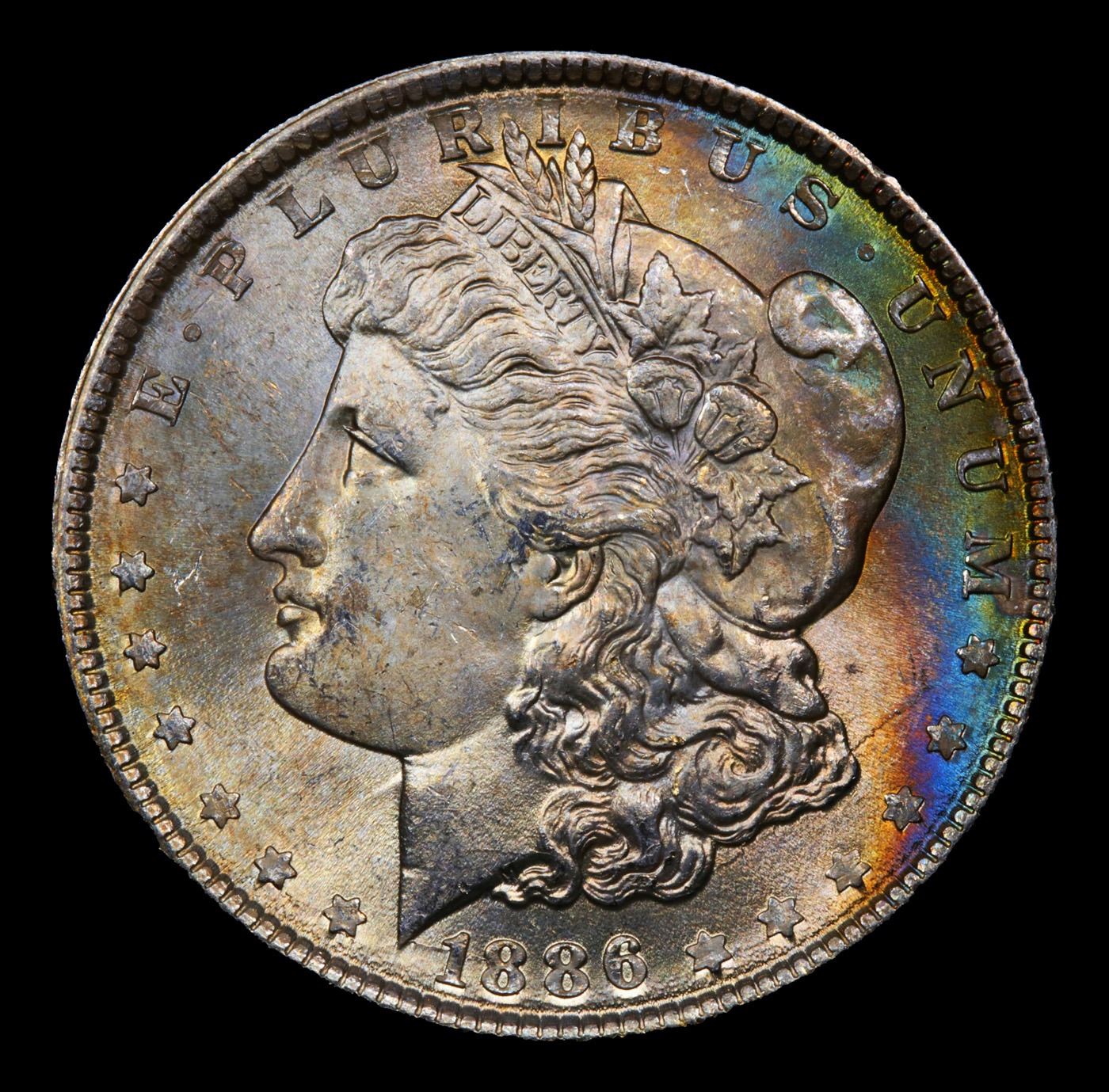 1886-p Rainbow Toned Morgan Dollar $1 Grades Choice Unc.