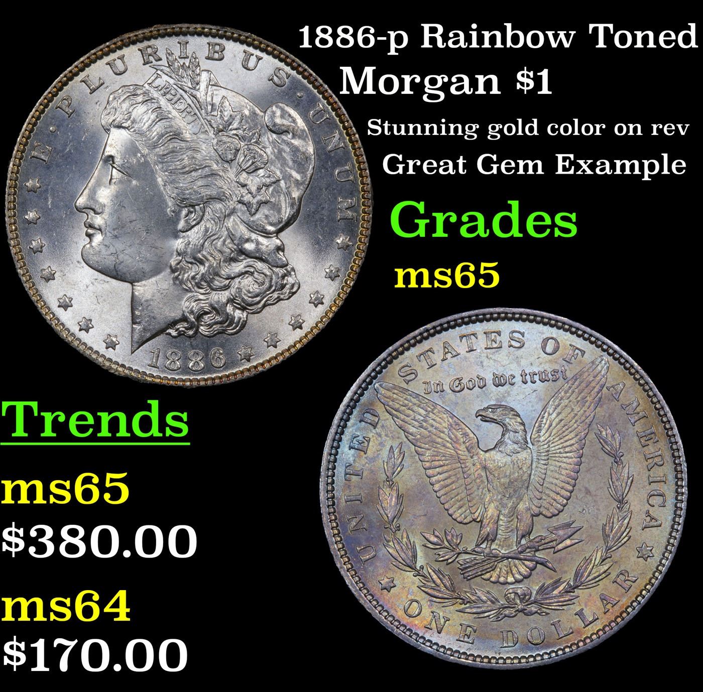 1886-p Rainbow Toned Morgan Dollar $1 Grades GEM Unc.