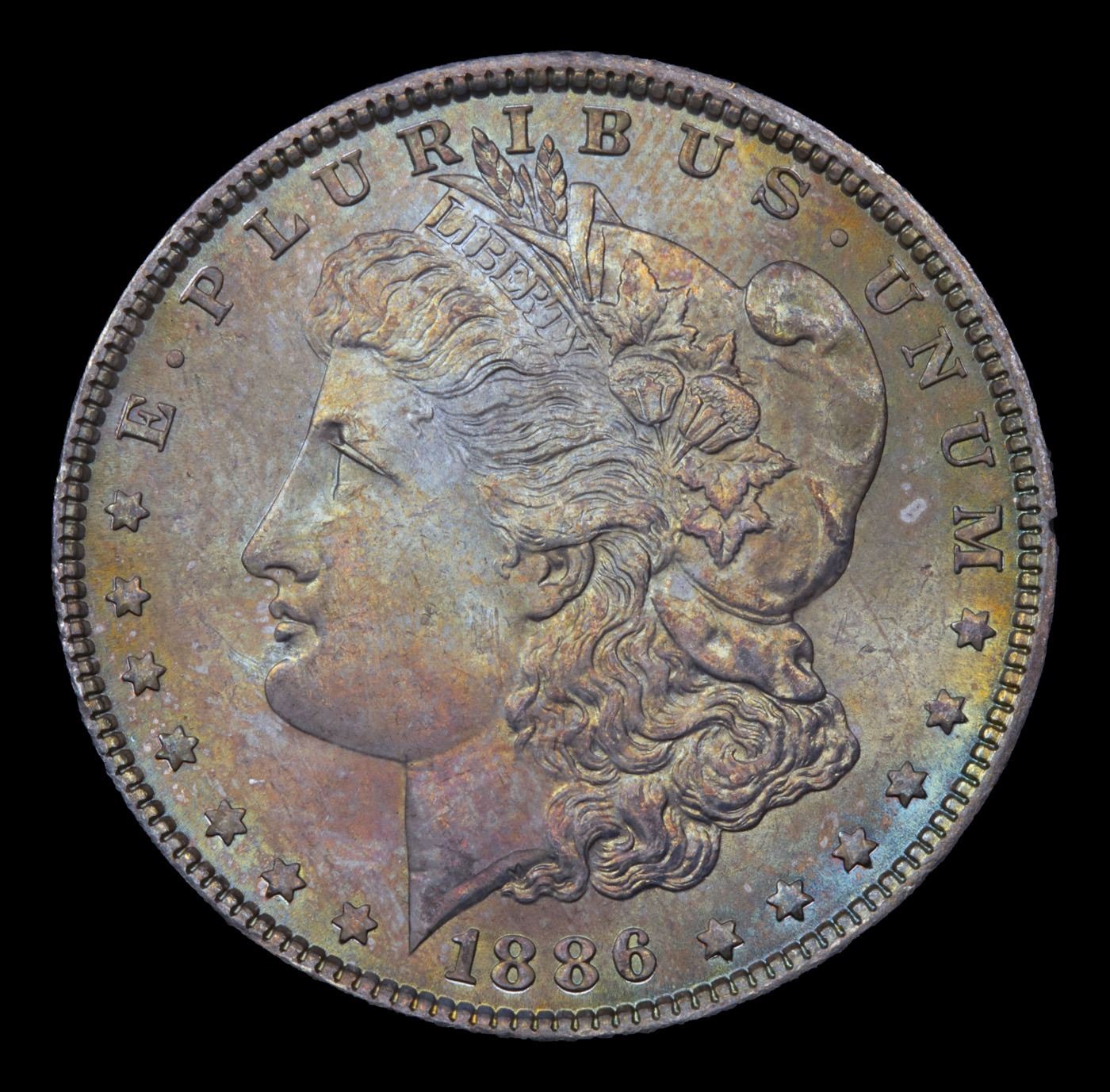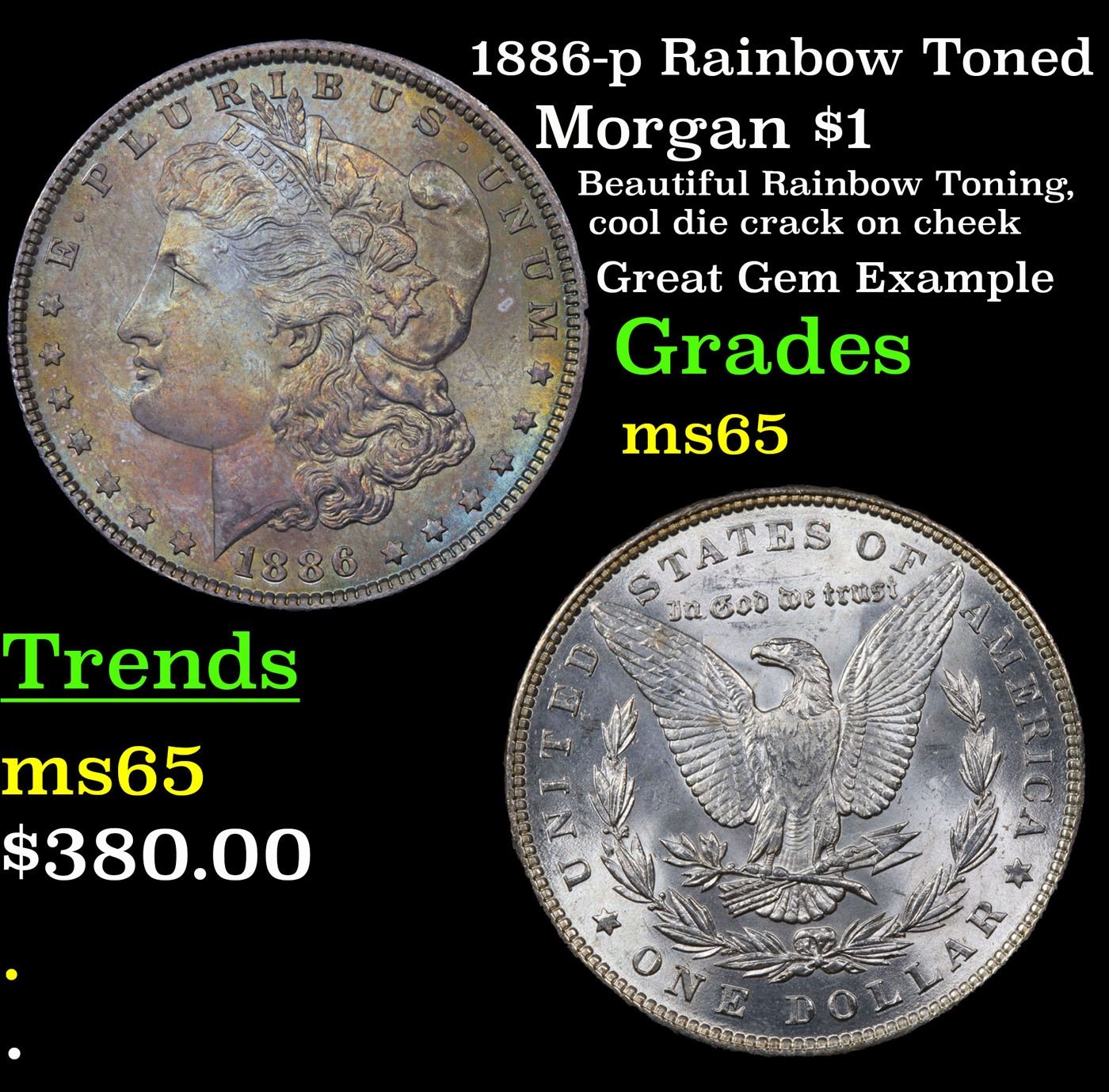 1886-p Rainbow Toned Morgan Dollar $1 Grades GEM Unc.