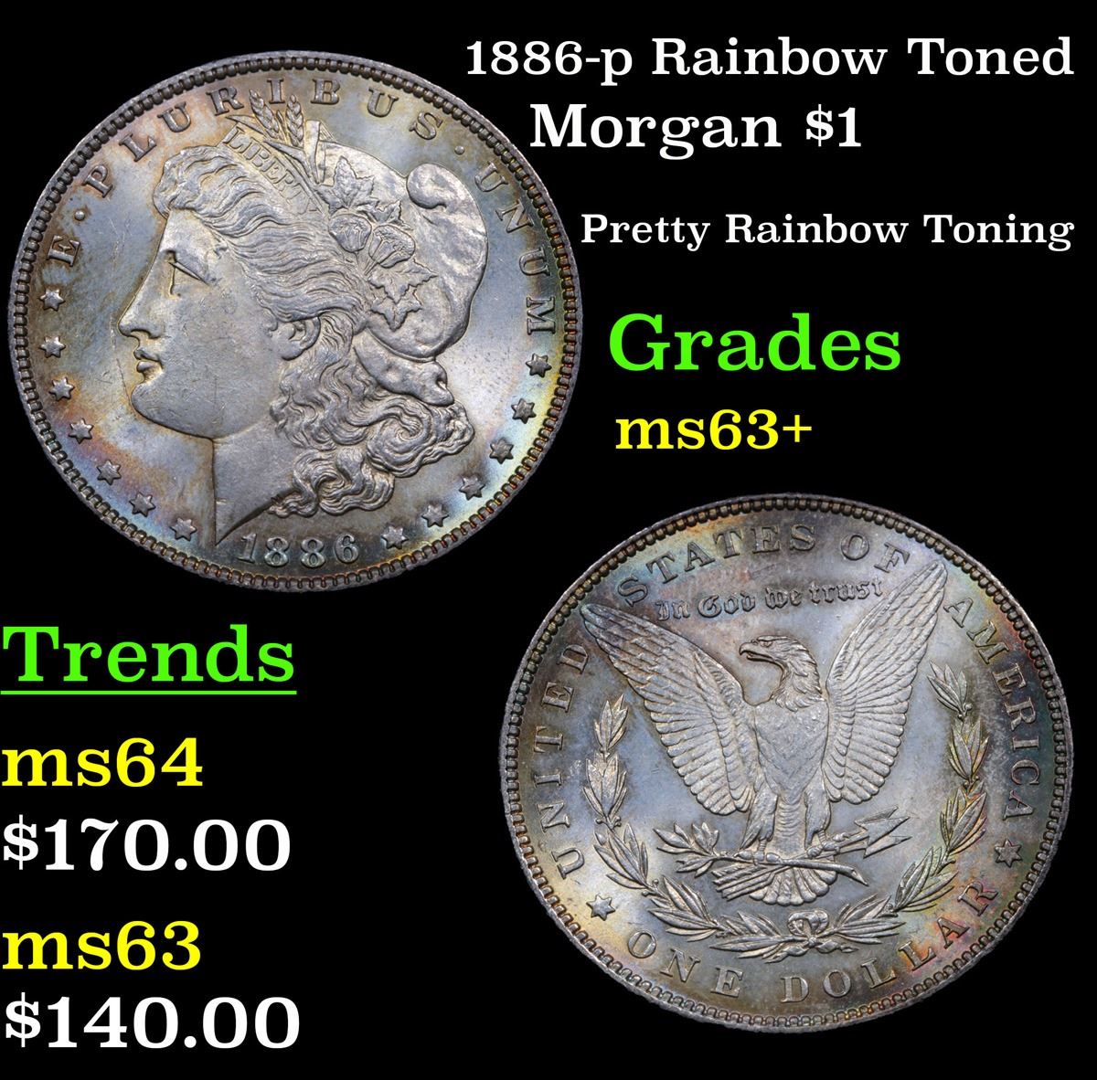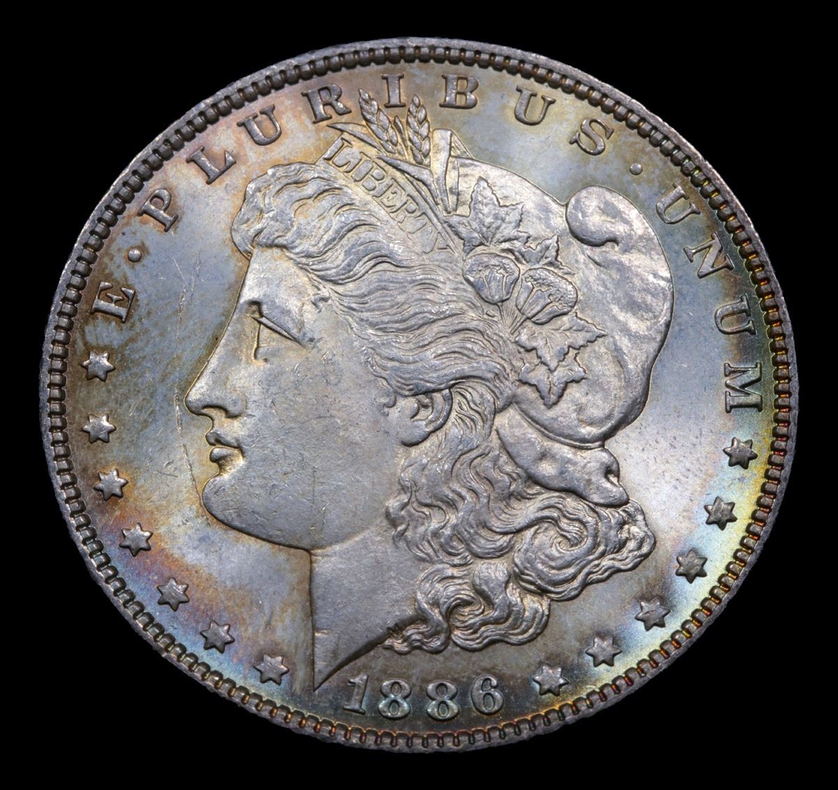 1886-p Rainbow Toned Morgan Dollar $1 Grades Select+ Unc.