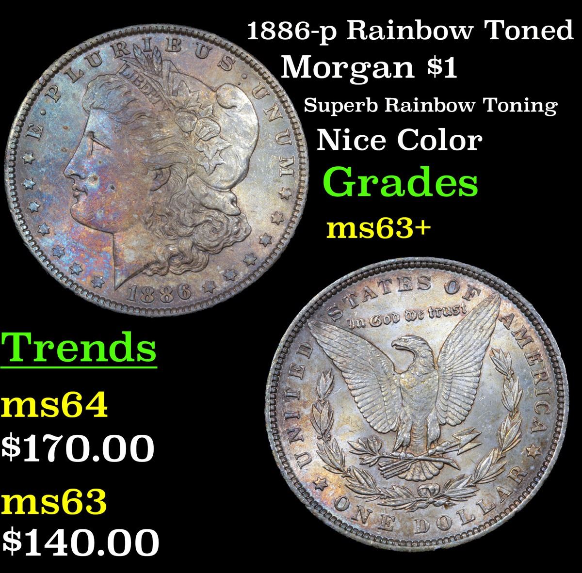 1886-p Rainbow Toned Morgan Dollar $1 Grades Select+ Unc.