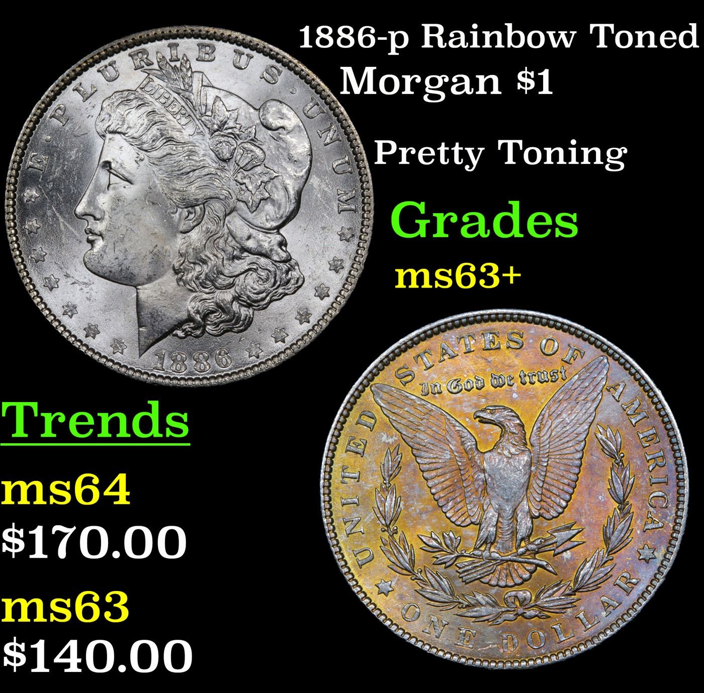 1886-p Rainbow Toned Morgan Dollar $1 Grades Select+ Unc.