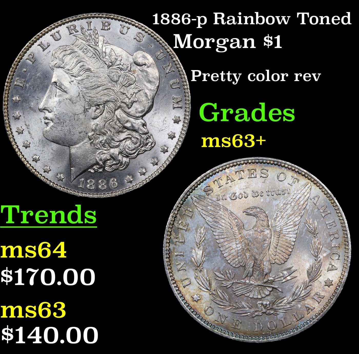 1886-p Rainbow Toned Morgan Dollar $1 Grades Select+ Unc.