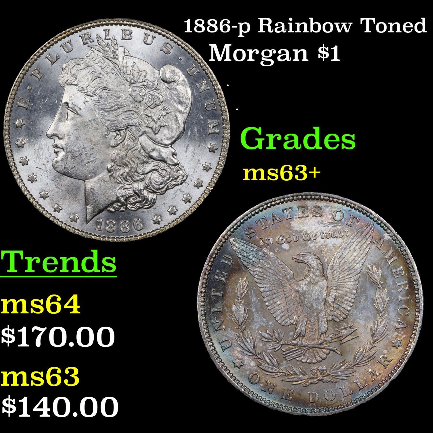 1886-p Rainbow Toned Morgan Dollar $1 Grades Select+ Unc.