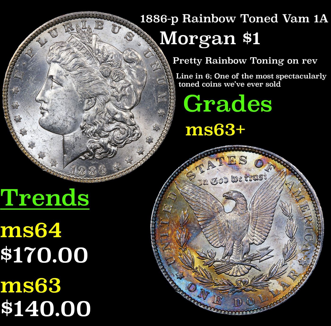 1886-p Rainbow Toned Vam 1A Morgan Dollar $1 Grades Select+ Unc.