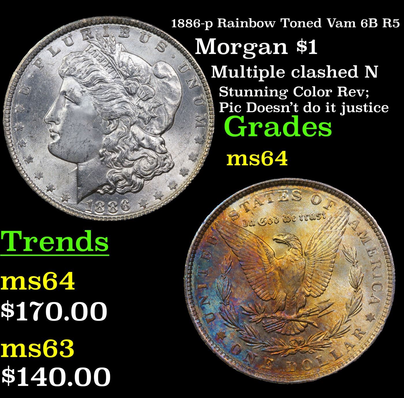 1886-p Rainbow Toned Vam 6B R5 Morgan Dollar $1 Grades Choice Unc.